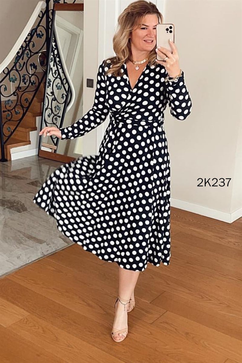 KRUVAZE YAKA LİKRALI TRAŞLANMIŞ SÜET KUMAŞ MİDİ ELBİSE OMUZDAN AŞAĞI BOY 115 CM