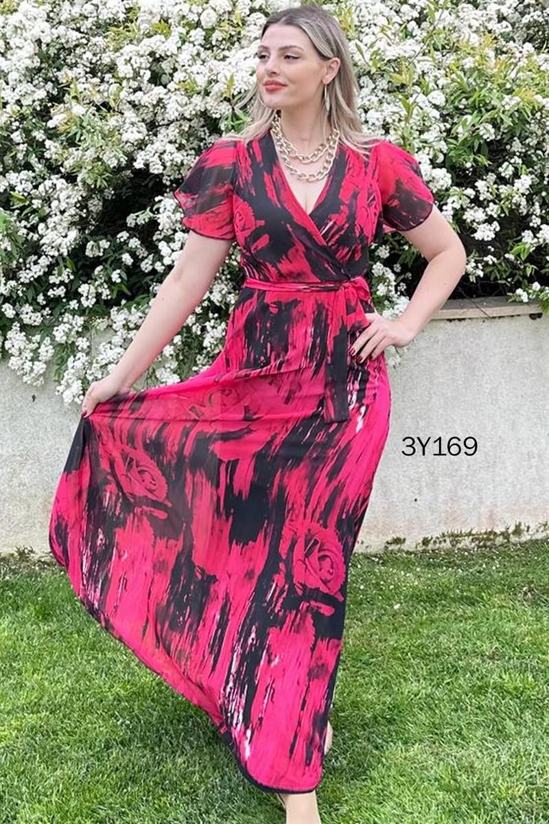 Kruvaze Yaka Belden Bağlamalı Şifon Elbise
