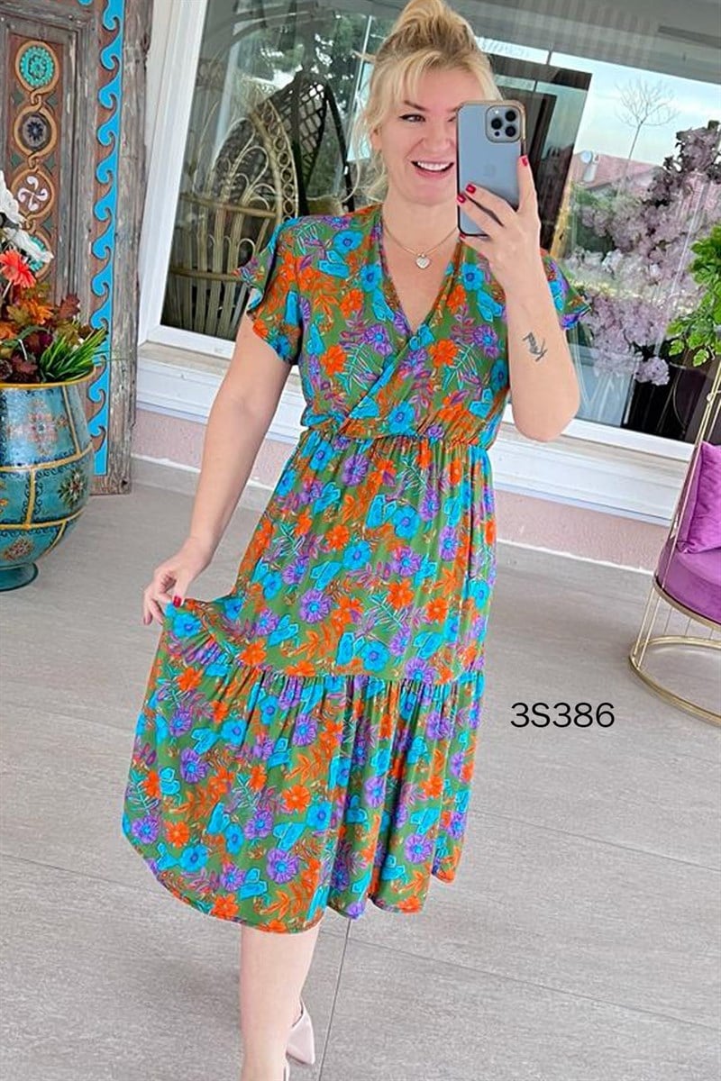 KRUVAZE YAKA BELİ LASTİKLİ ELBİSE OMUZDAN AŞAĞI 115 -117 CM ARASI DEĞİŞMEKTEDİR