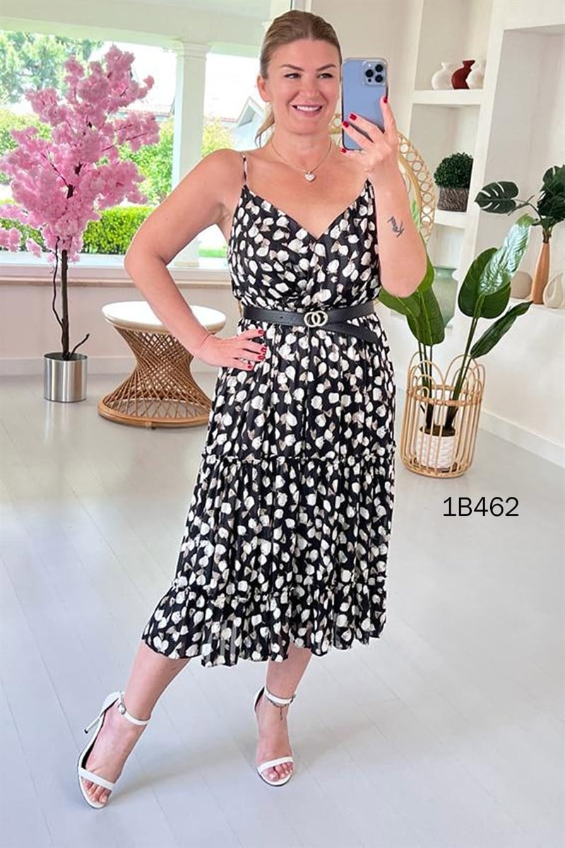 Kruvaze Yaka İp Askılı Şifon Elbise