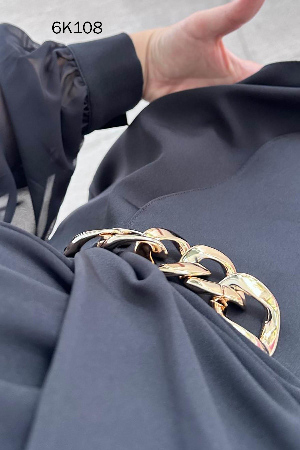 KRUVAZE YAKA KOLLARI ŞİFON DOUBLE BLUZ OMUZDAN AŞAĞI 68 CM