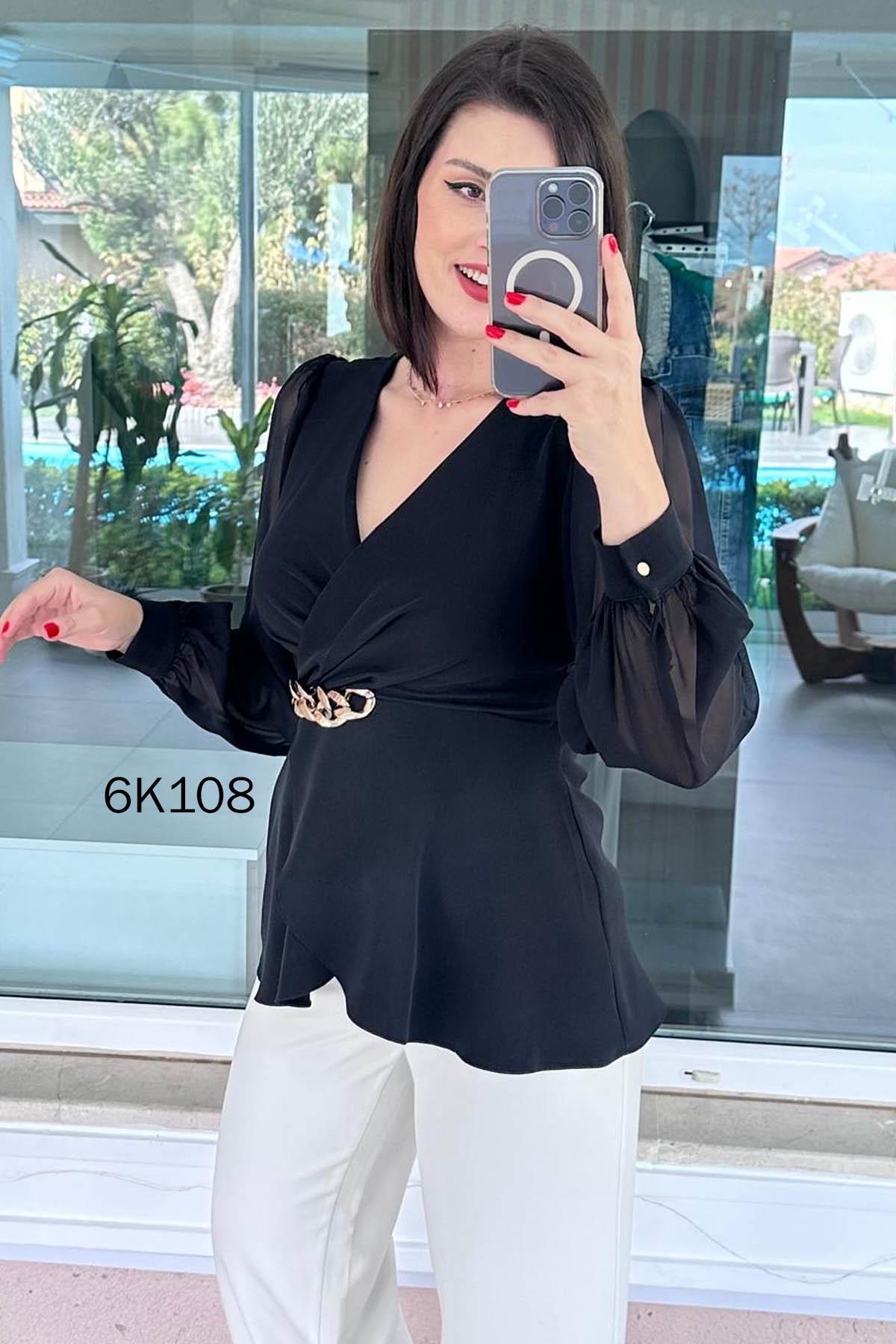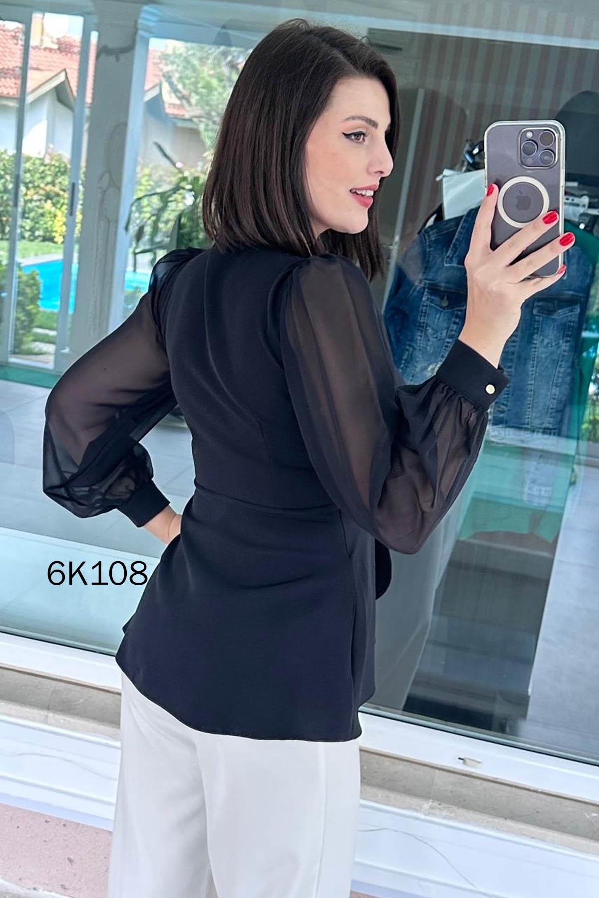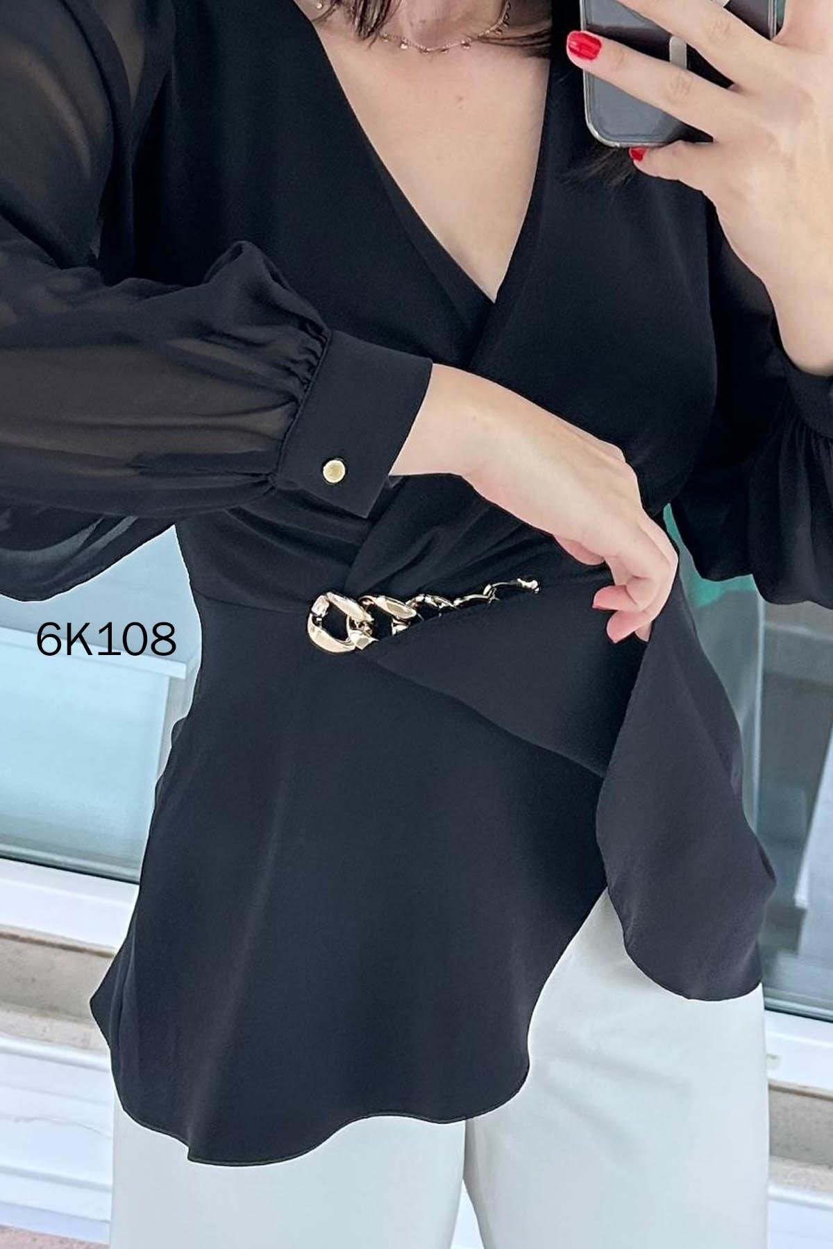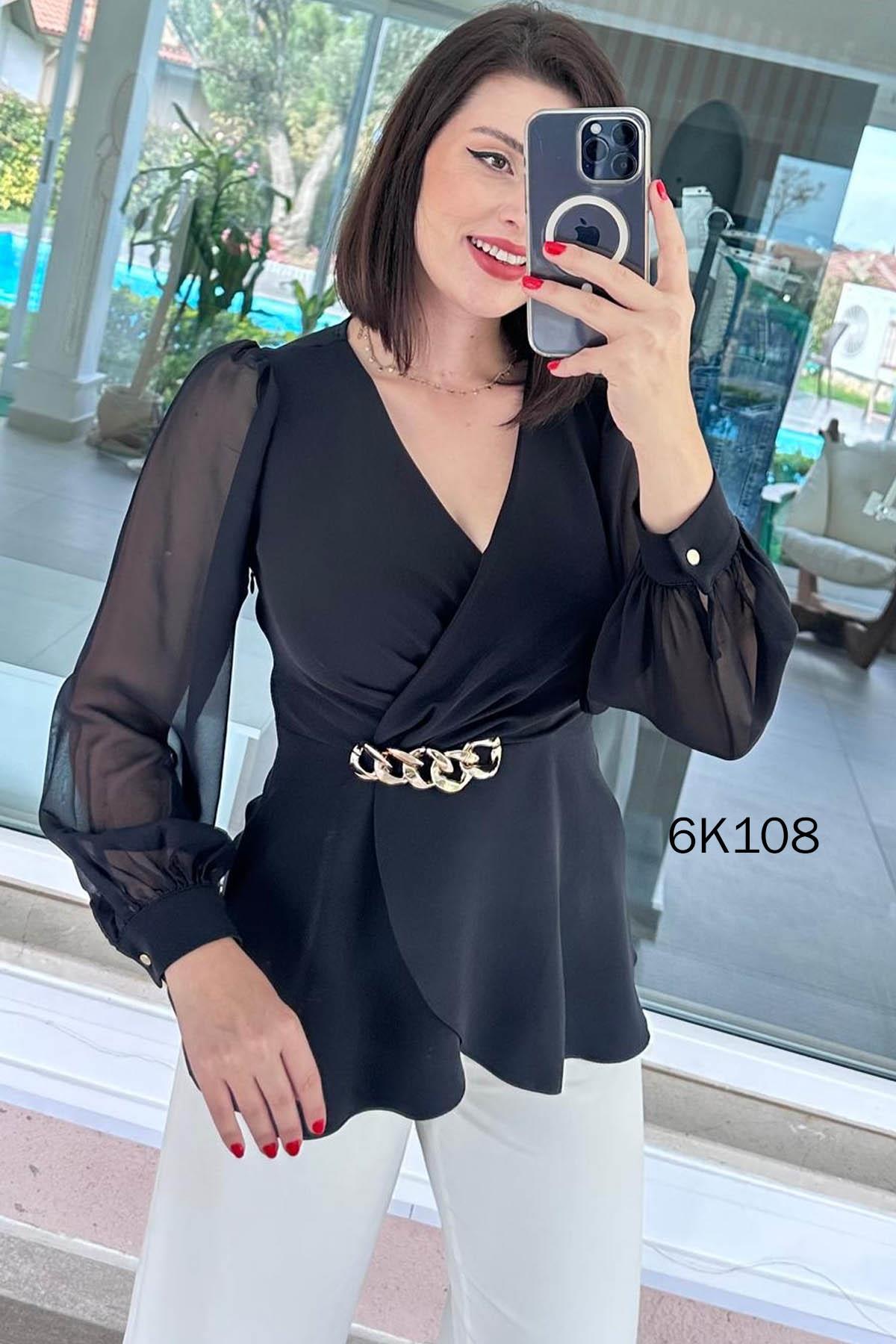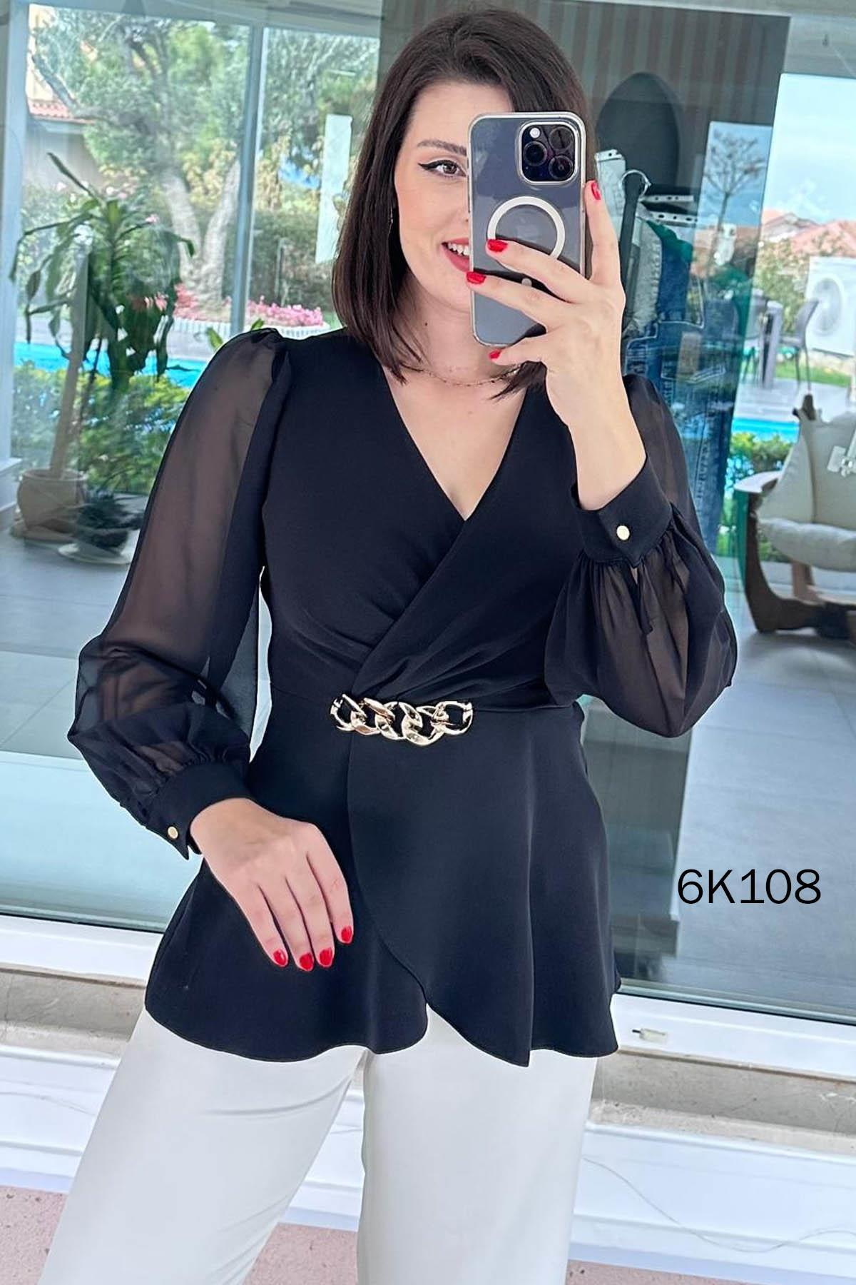 Kruvaze Yaka Kolları Şifon Double Bluz