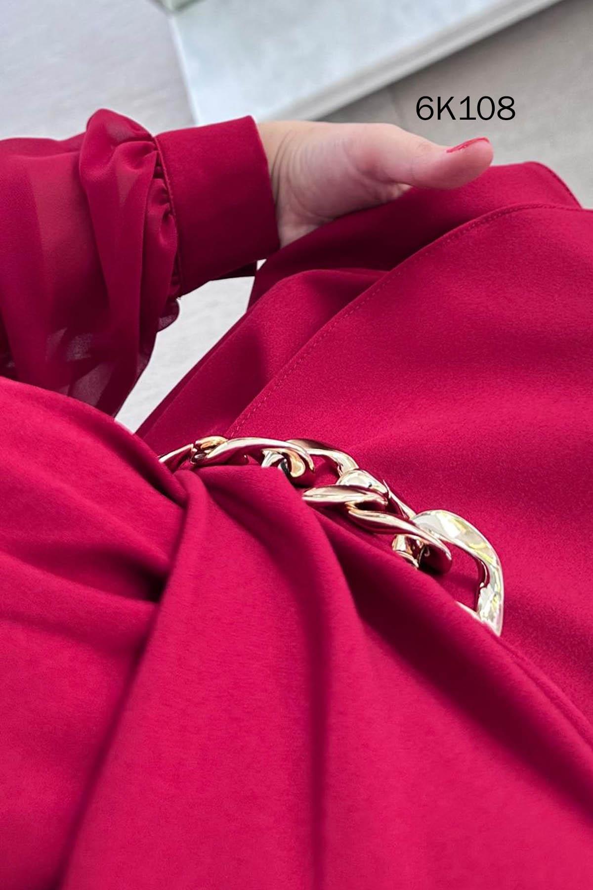 KRUVAZE YAKA KOLLARI ŞİFON DOUBLE BLUZ OMUZDAN AŞAĞI 68 CM