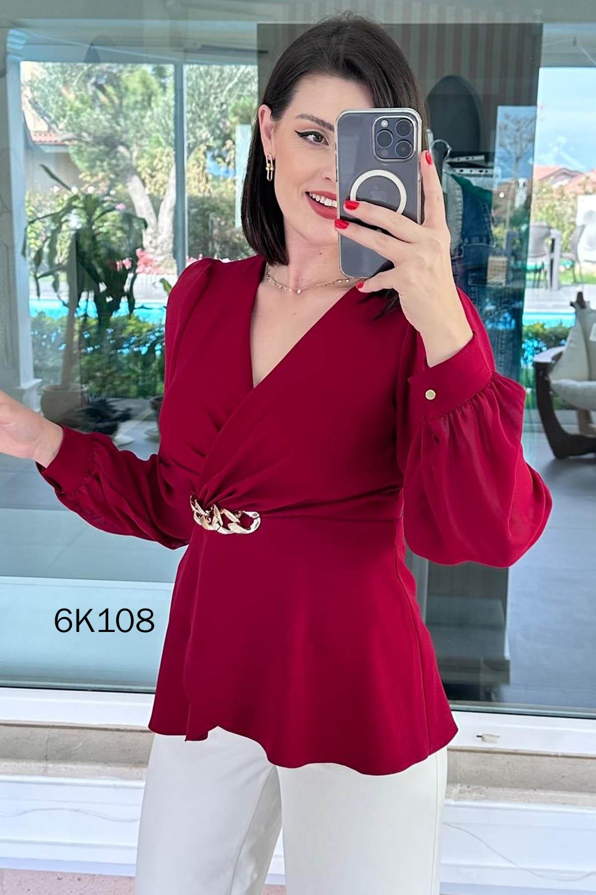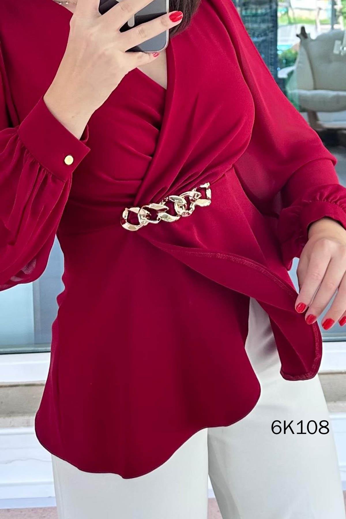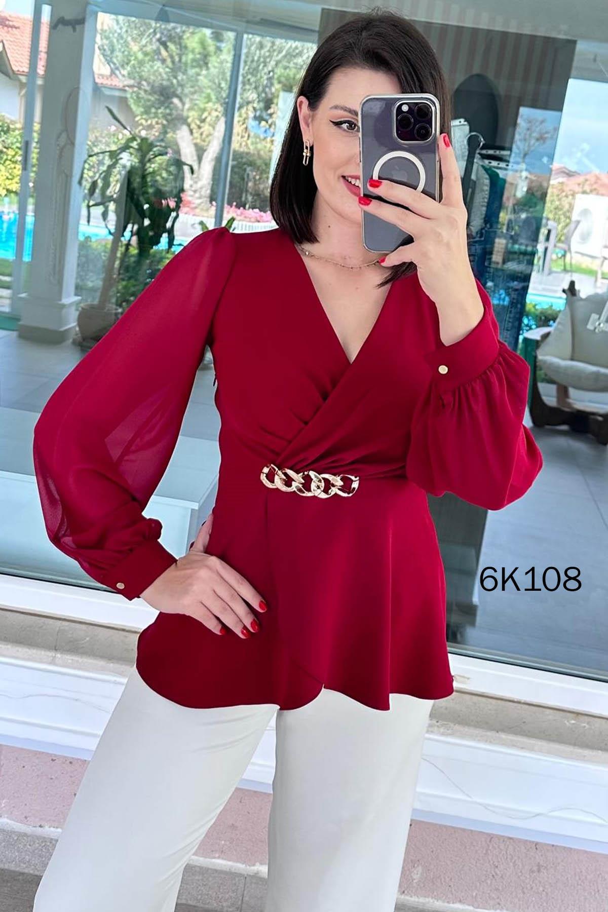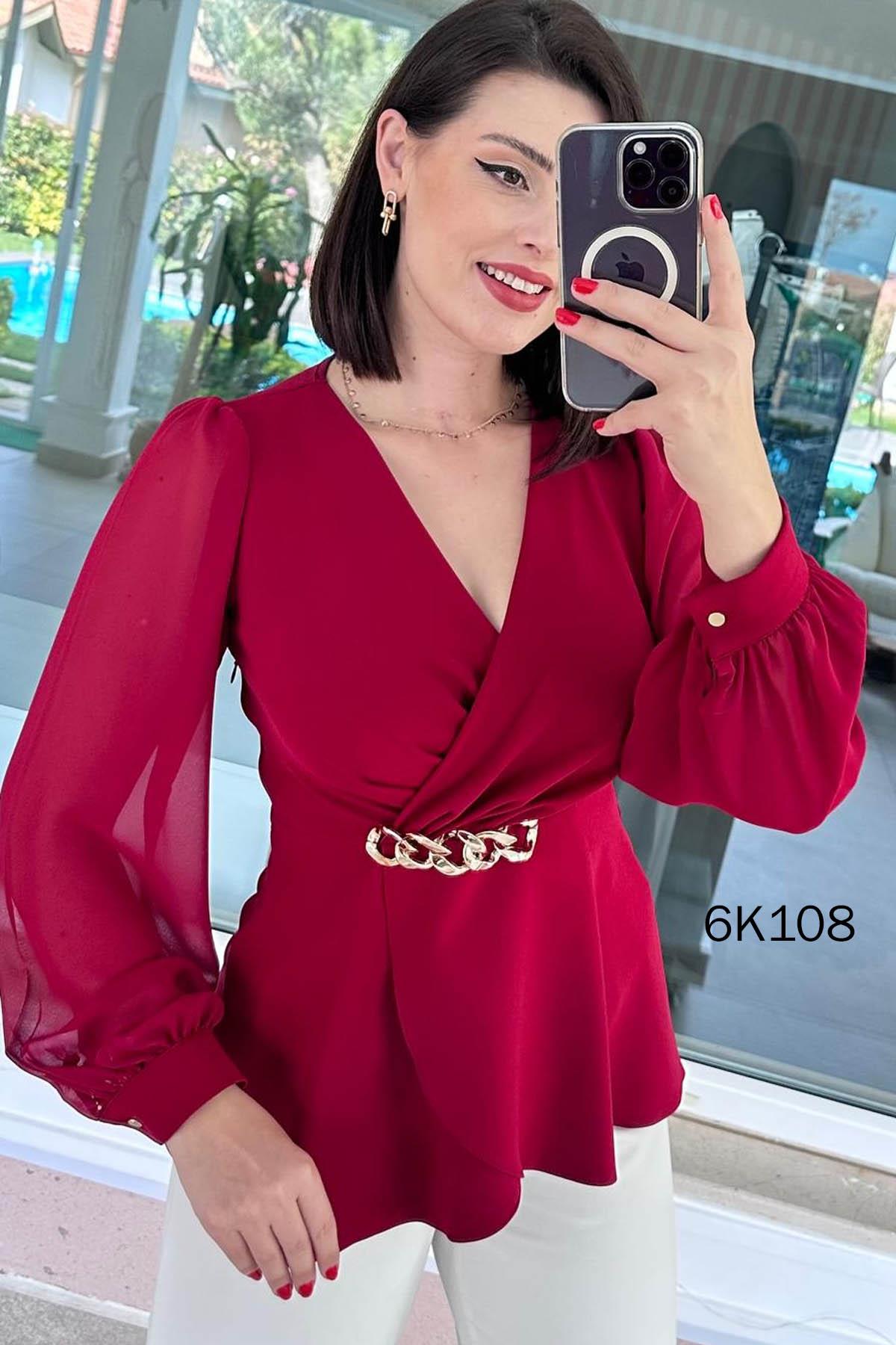 Kruvaze Yaka Kolları Şifon Double Bluz