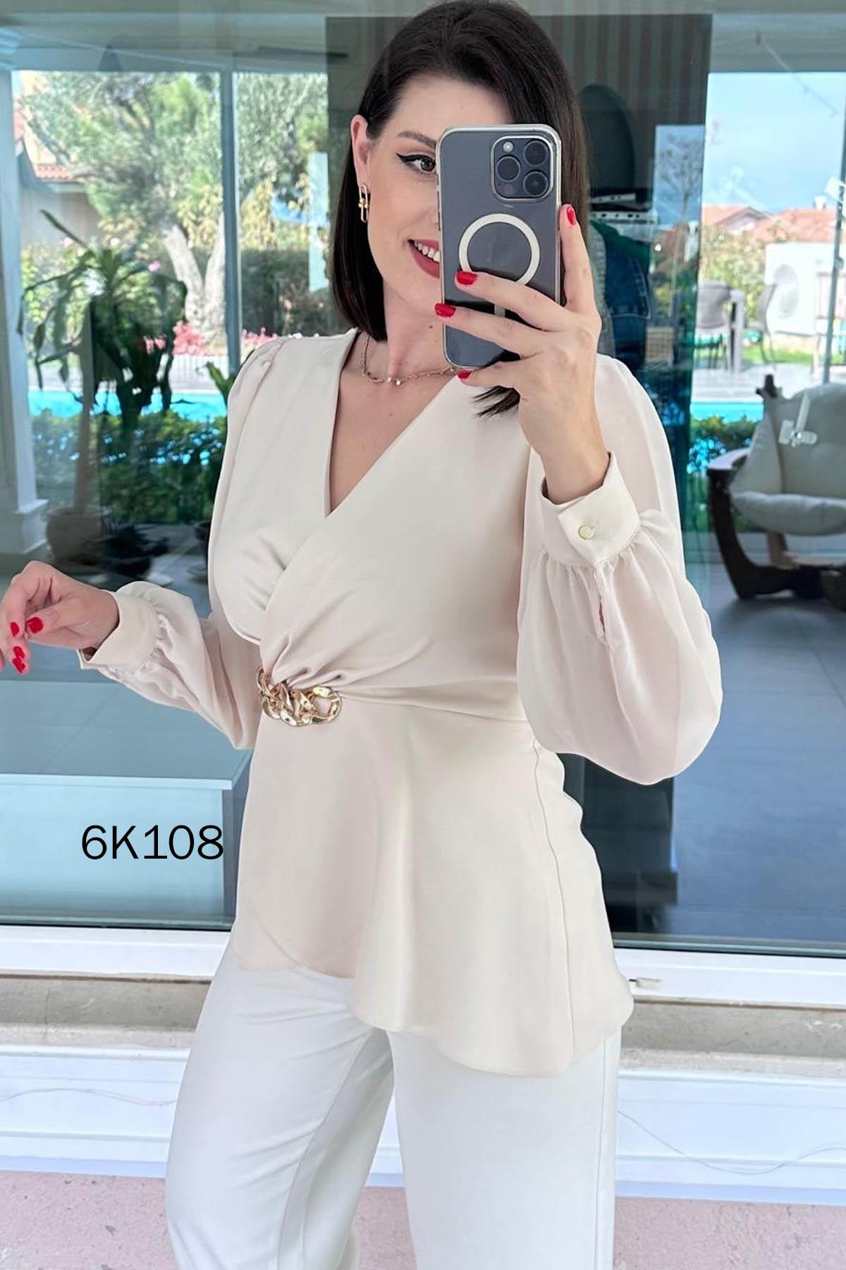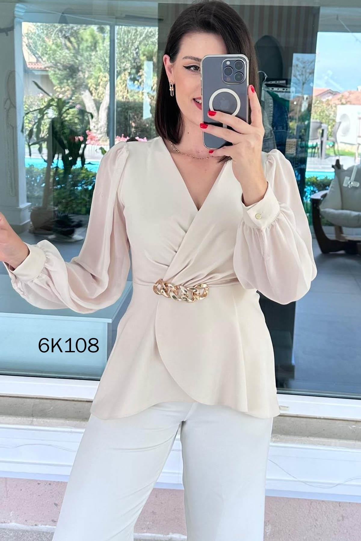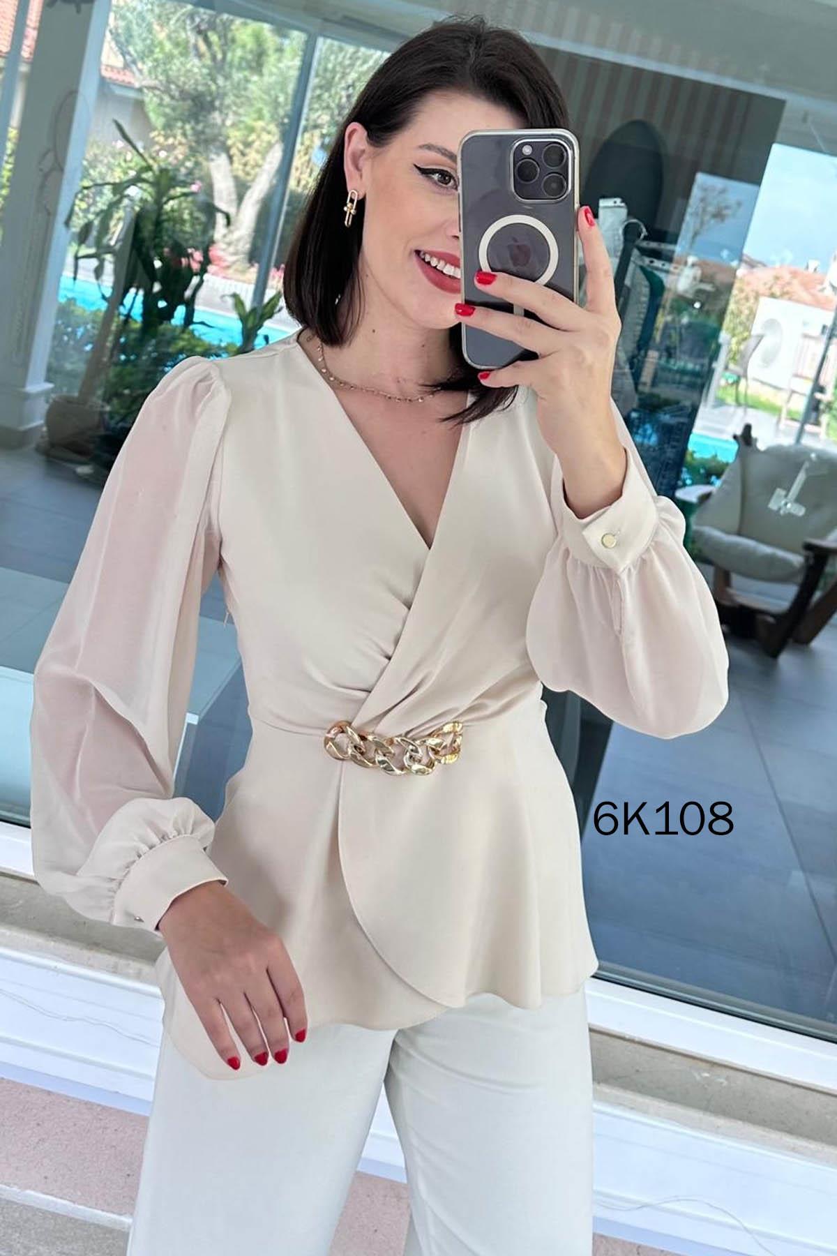 Kruvaze Yaka Kolları Şifon Double Bluz