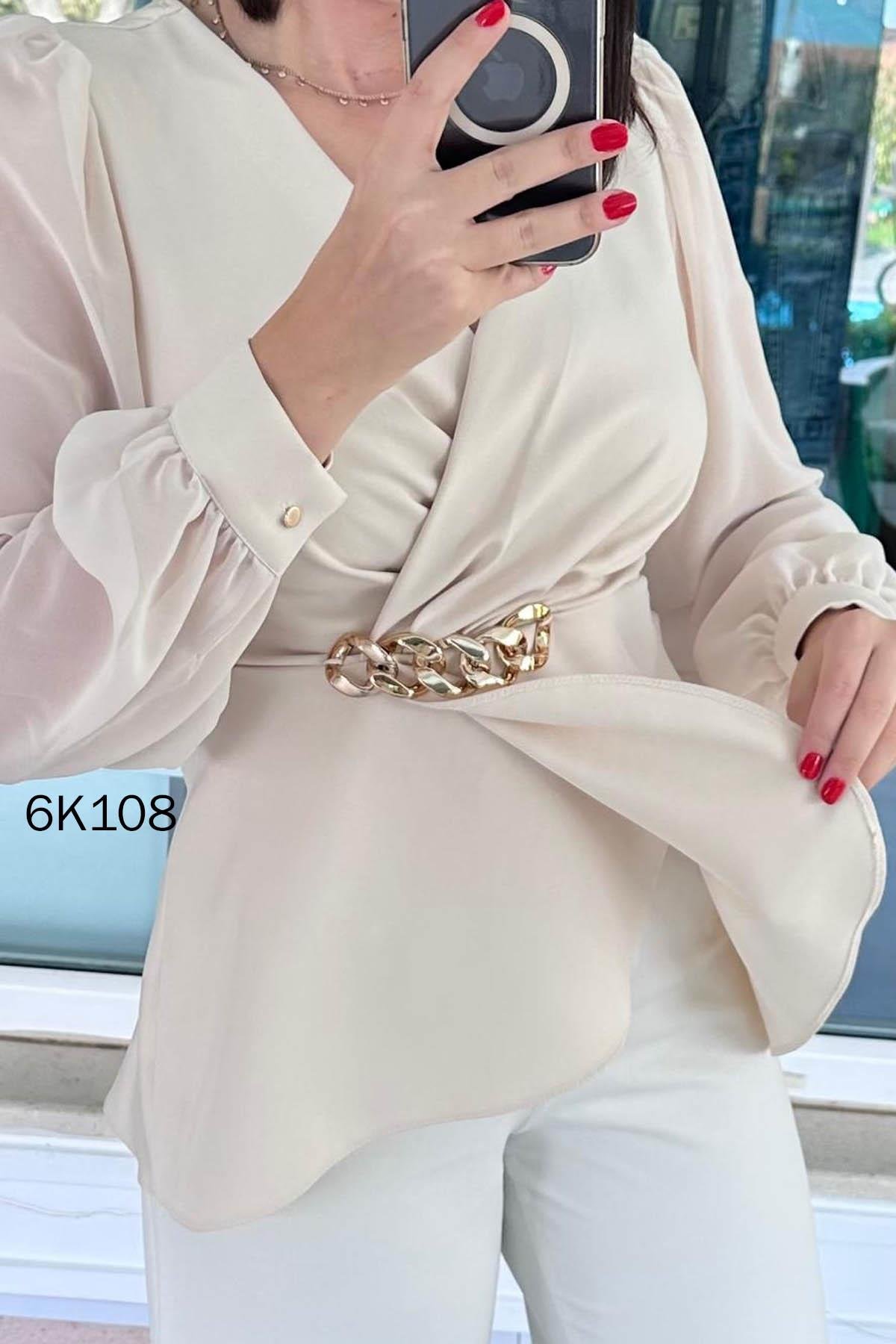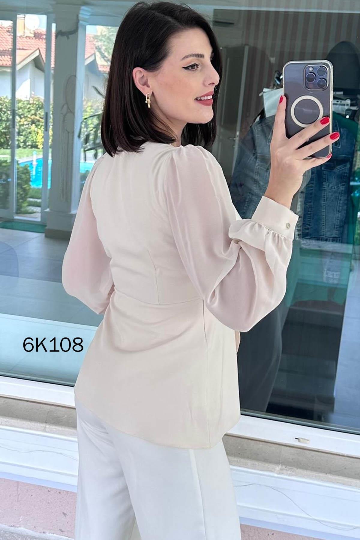 KRUVAZE YAKA KOLLARI ŞİFON DOUBLE BLUZ OMUZDAN AŞAĞI 68 CM