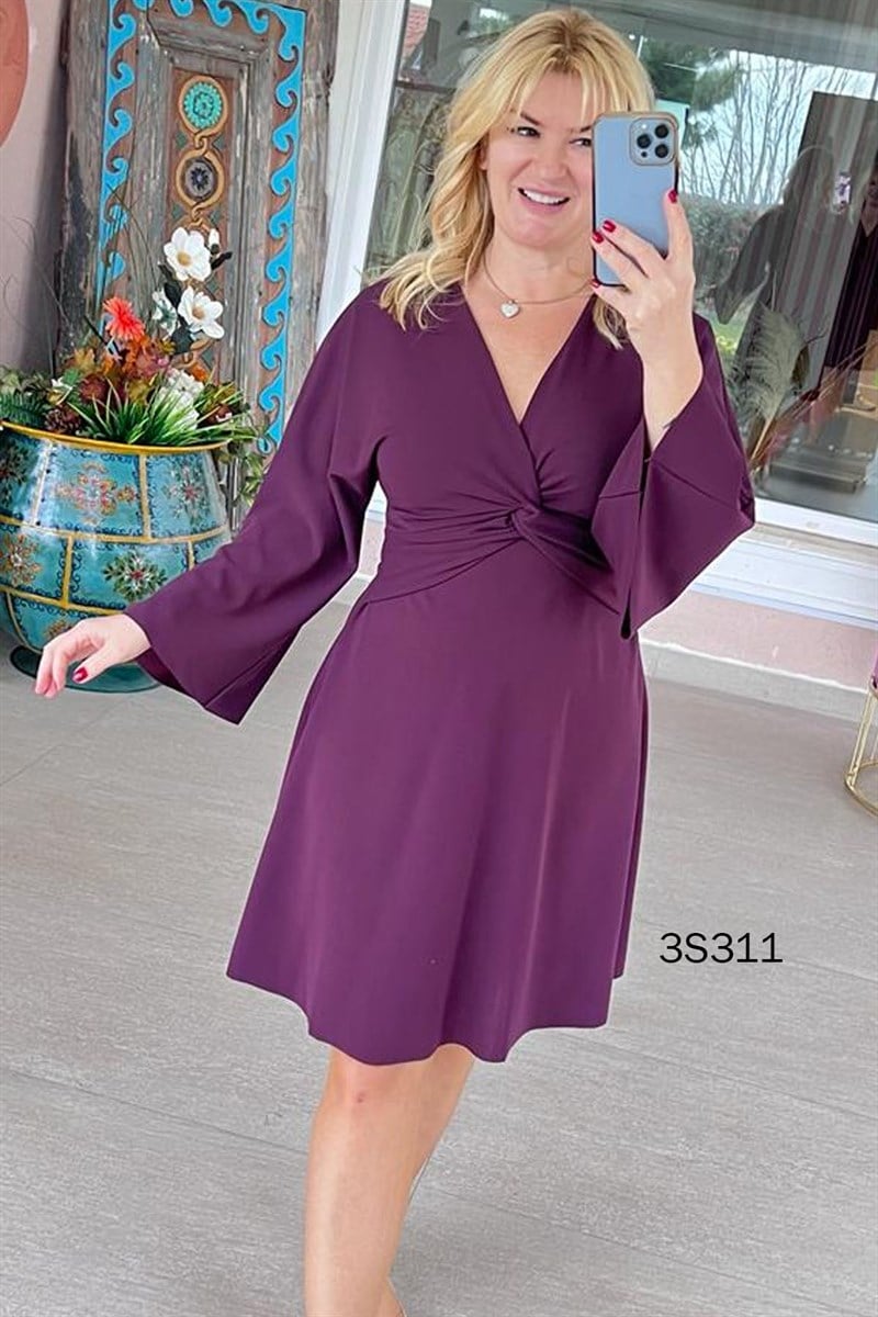 KRUVAZE YAKA KREP ELBİSE OMUZDAN AŞAĞI 97 CM