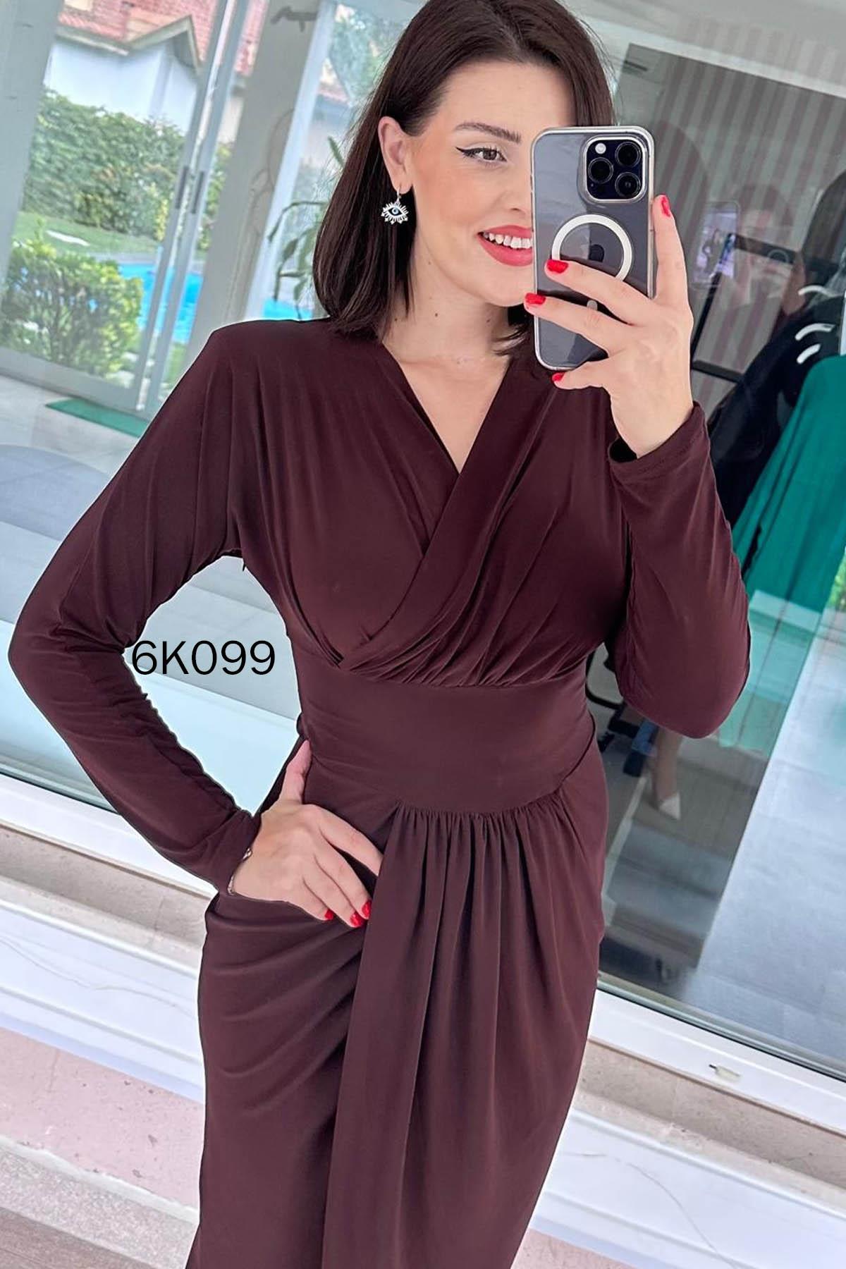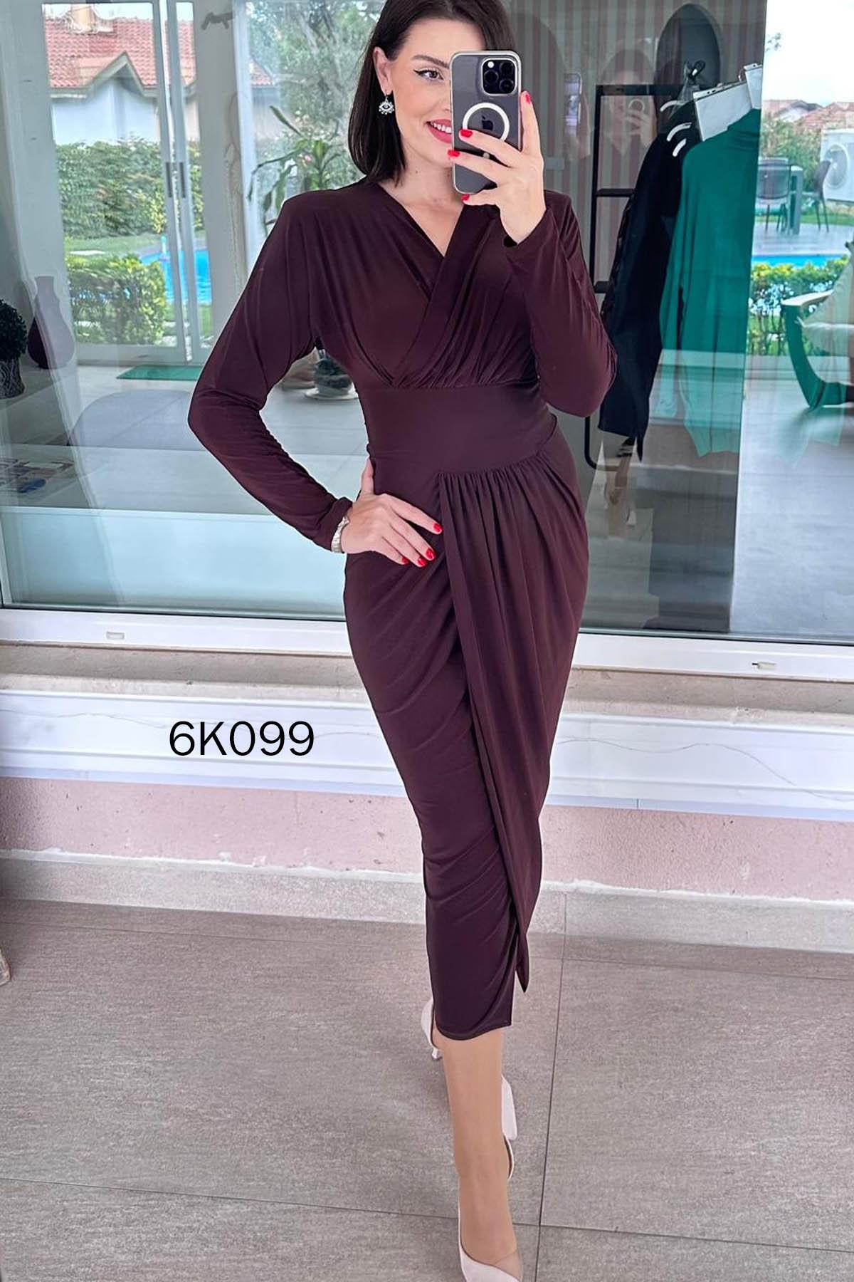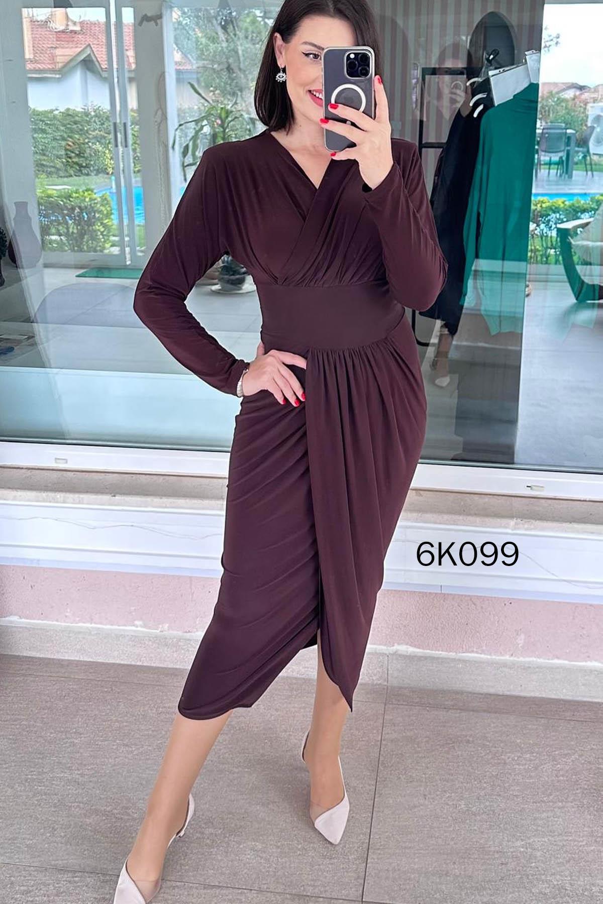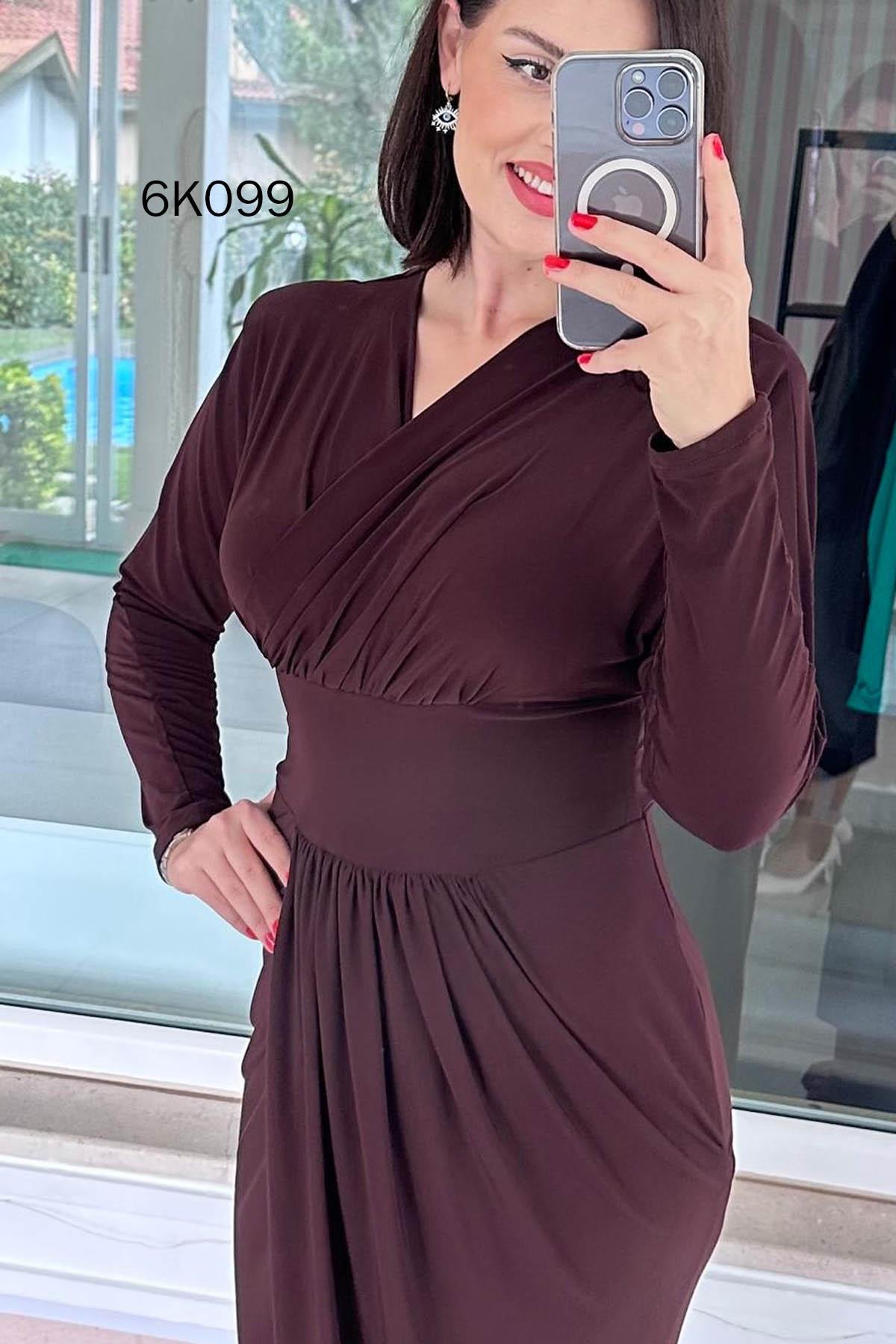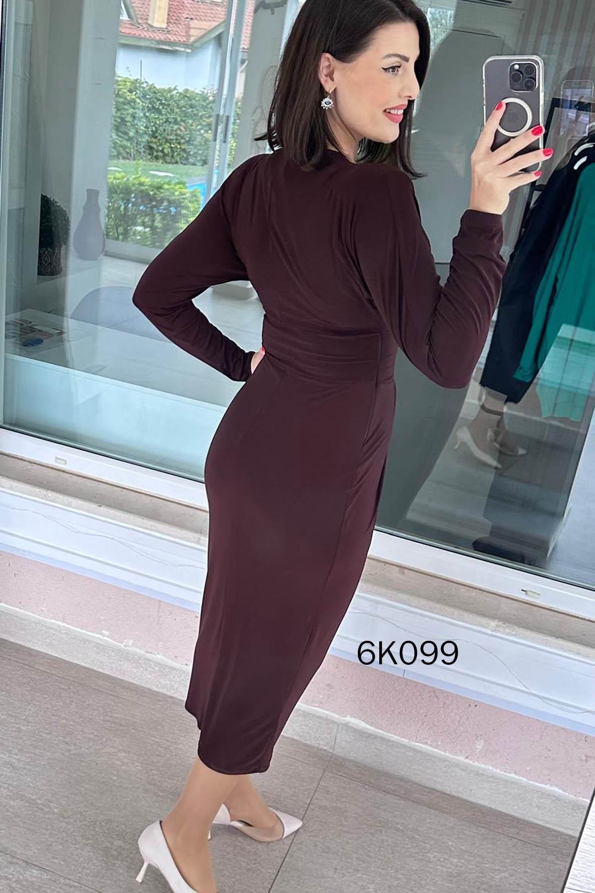 Kruvaze Yaka Sandy Elbise