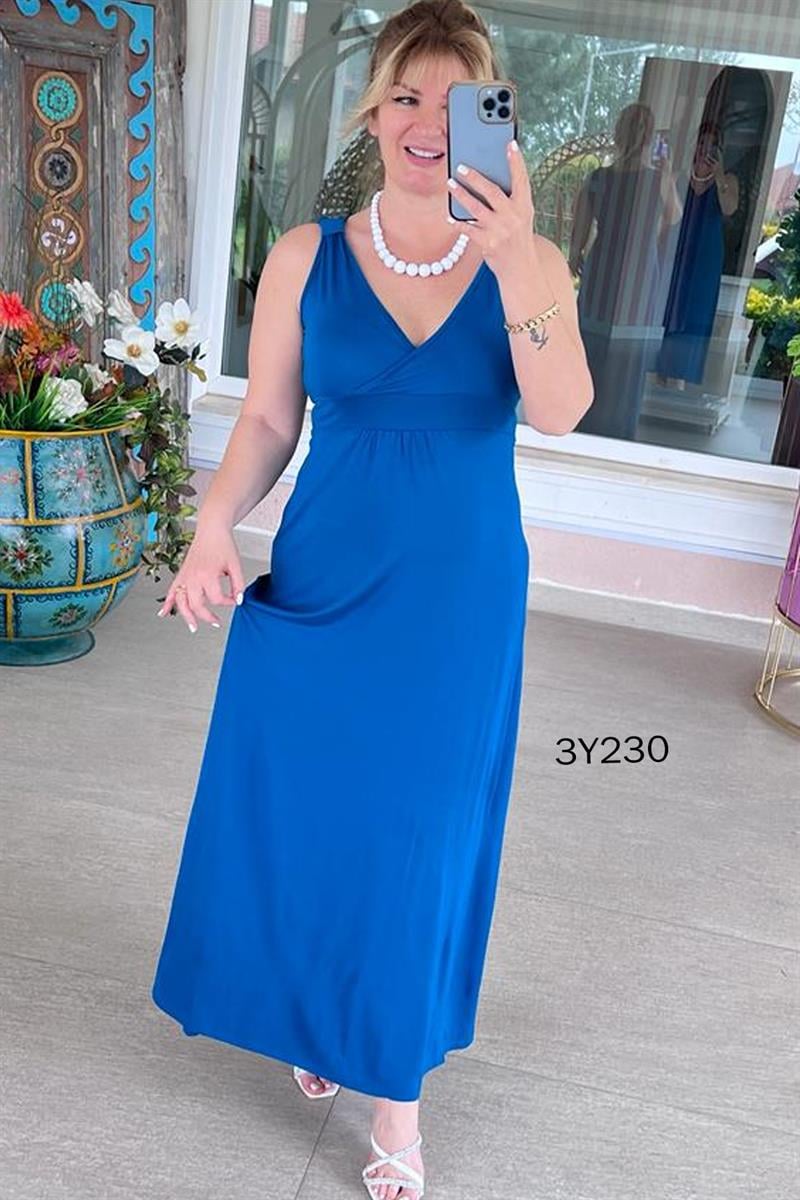 Kruvaze Yaka Sıfır Kol Viskon Elbise