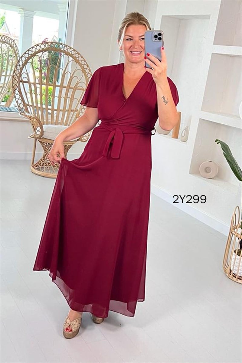 KRUVAZE YAKA ŞİFON ELBİSE OMUZDAN AŞAĞI 140 CM
