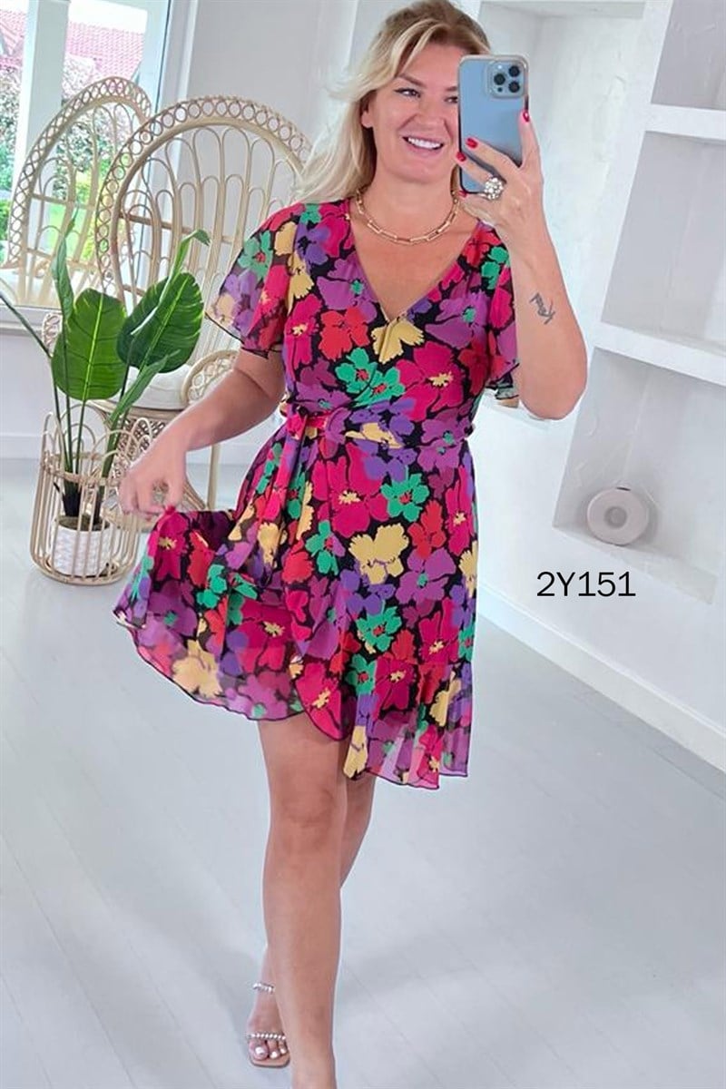 KRUVAZE YAKA ŞİFON ELBİSE OMUZDAN AŞAĞI 93 CM