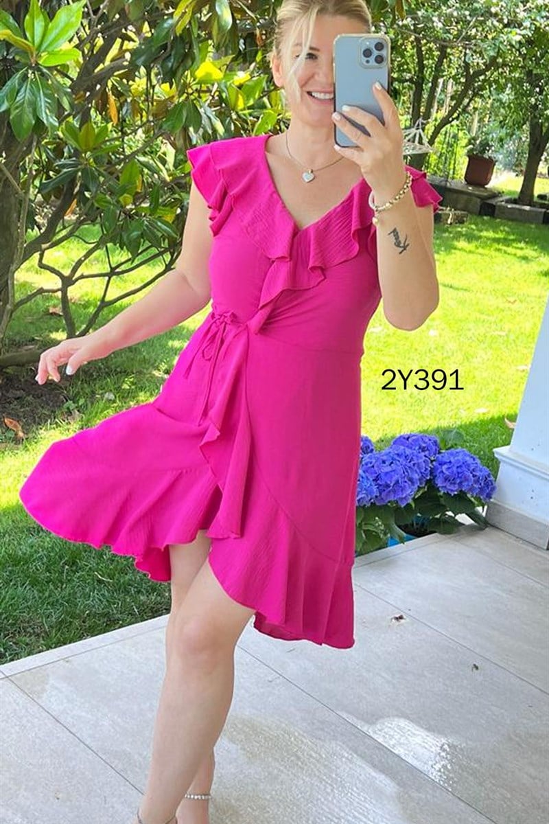 Kruvaze Yaka Volanlı Aerobin Elbise