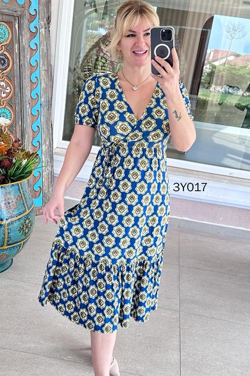 KRUVAZE YAKA YANDAN BAĞLAMALI ELBİSE OMUZDAN AŞAĞI RENKLER ARASI 110 CM İLE 115 CM ARASI DEĞİŞMEKTEDİR