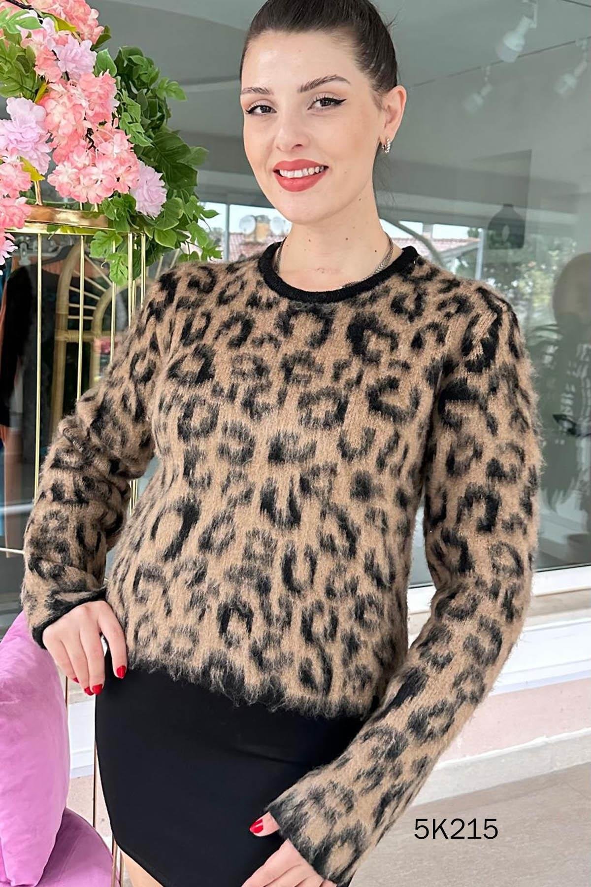 LEOPAR DESENLİ TRİKO BLUZ OMUZDAN AŞAĞI 52 CM