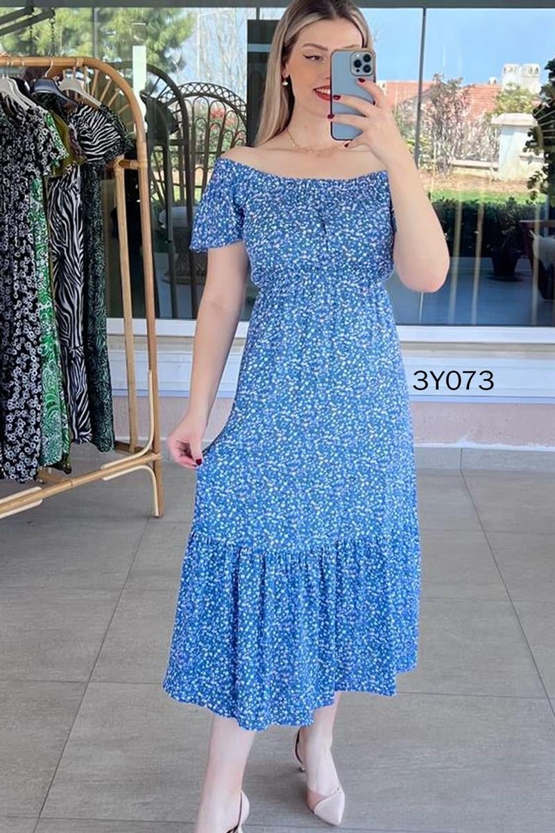 MADONNA YAKA BELİ LASTİKLİ VİSKON ELBİSE OMUZDAN AŞAĞI 120 CM