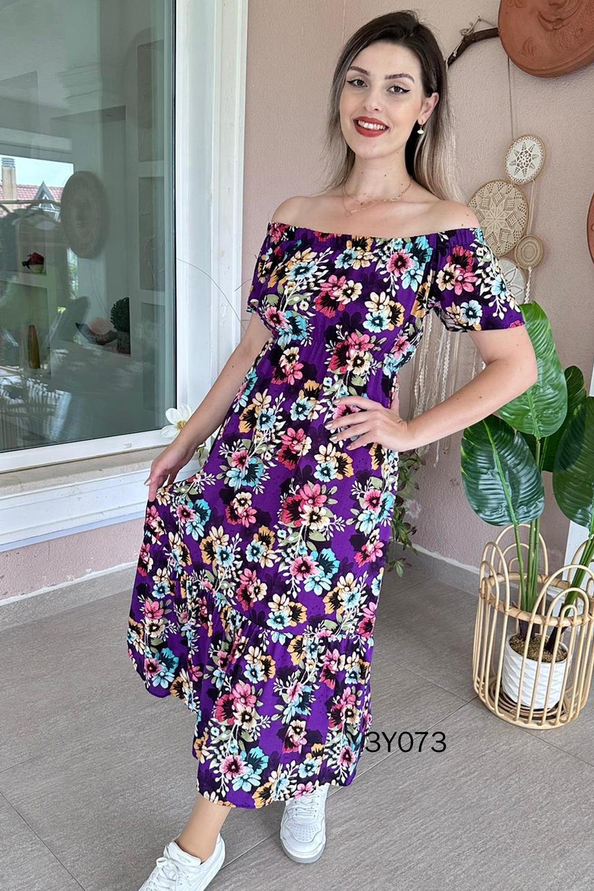 MADONNA YAKA BELİ LASTİKLİ VİSKON ELBİSE OMUZDAN AŞAĞI 120 CM