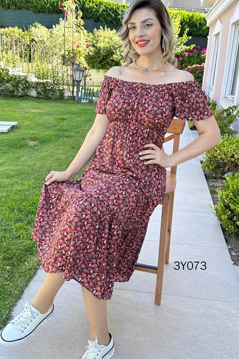MADONNA YAKA BELİ LASTİKLİ VİSKON ELBİSE OMUZDAN AŞAĞI 120 CM