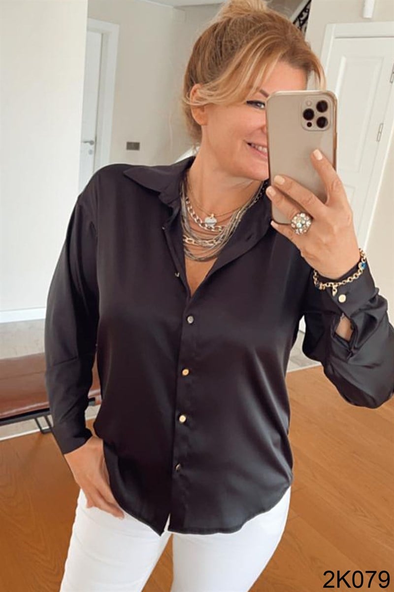 METAL DÜĞMELİ SATEN GÖMLEK OMUZDAN AŞAĞI 65 CM