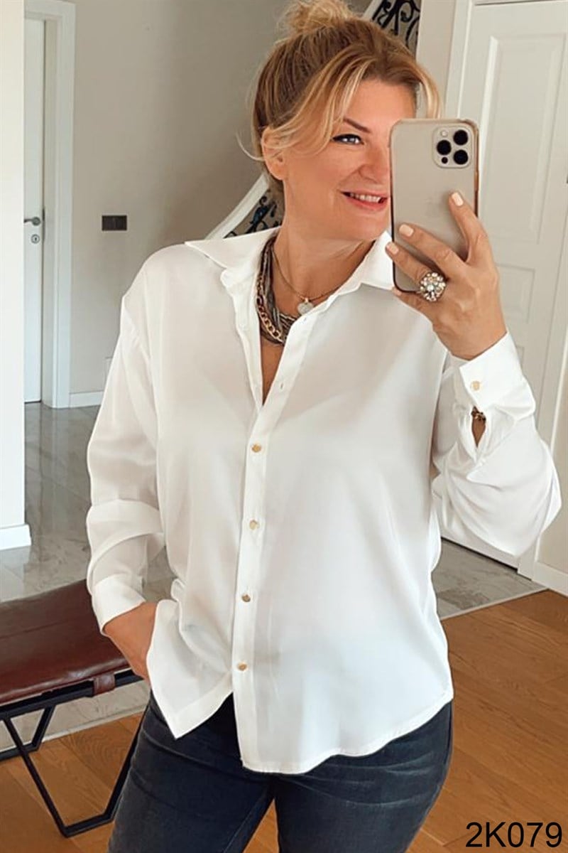 METAL DÜĞMELİ SATEN GÖMLEK OMUZDAN AŞAĞI 65 CM