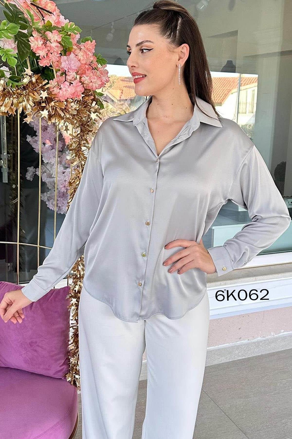 Metal Düğmeli Saten Gömlek