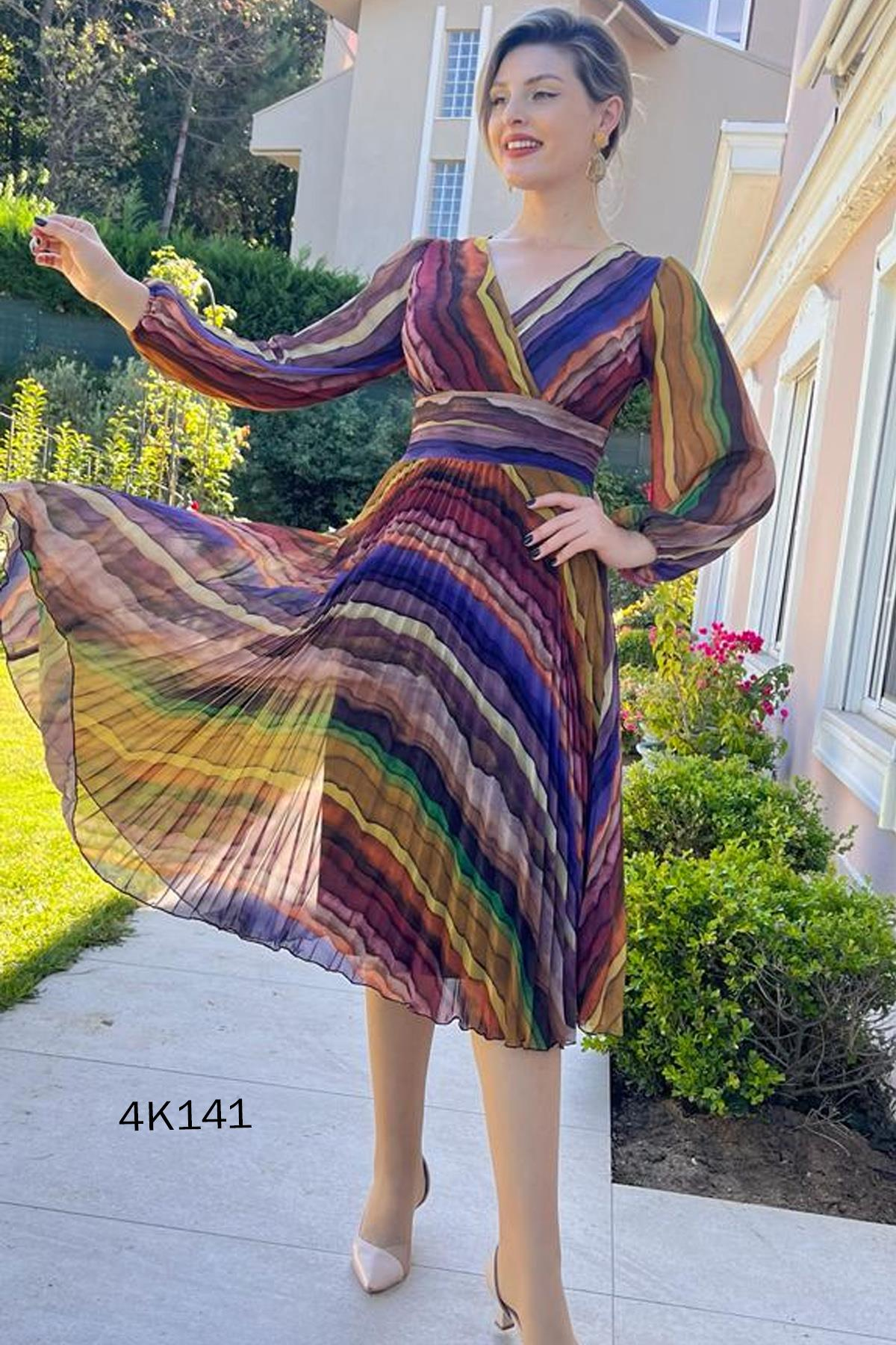 MULTİ ŞİFON PİLİSELİ ELBİSE OMUZDAN AŞAĞI 114 CM