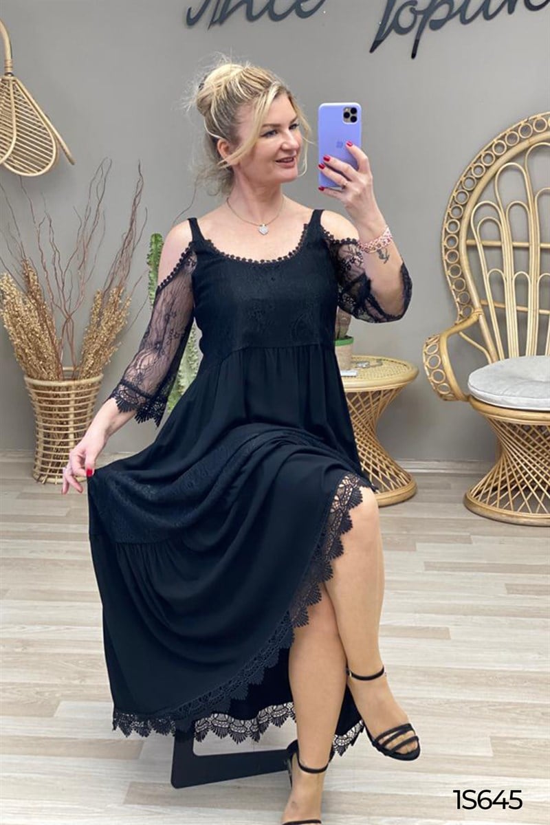 OMUZ ASKILI DANTEL DETAY ELBİSE OMUZDAN AŞAĞI 135 CM