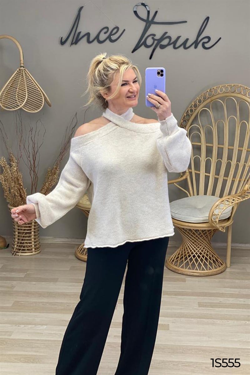OMUZU ASKILI TRİKO KAZAK OMUZDAN AŞAĞI 55 CM