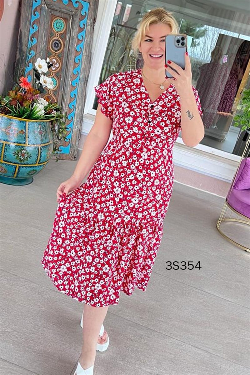 ÖNDEN DÜĞMELİ BELDEN BAĞLAMALI ELBİSE OMUZDAN AŞAĞI 115 - 117 ARASI DEĞİŞMEKTEDİR