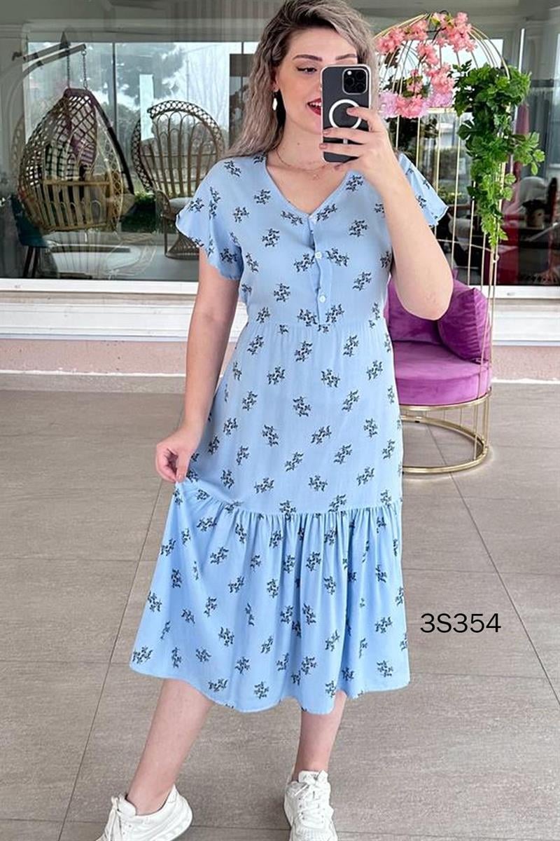 ÖNDEN DÜĞMELİ BELDEN BAĞLAMALI ELBİSE OMUZDAN AŞAĞI 115 - 117 ARASI DEĞİŞMEKTEDİR