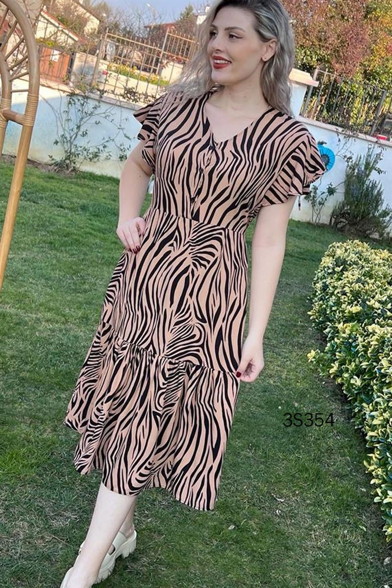 Önden Düğmeli Belden Bağlamalı Elbise
