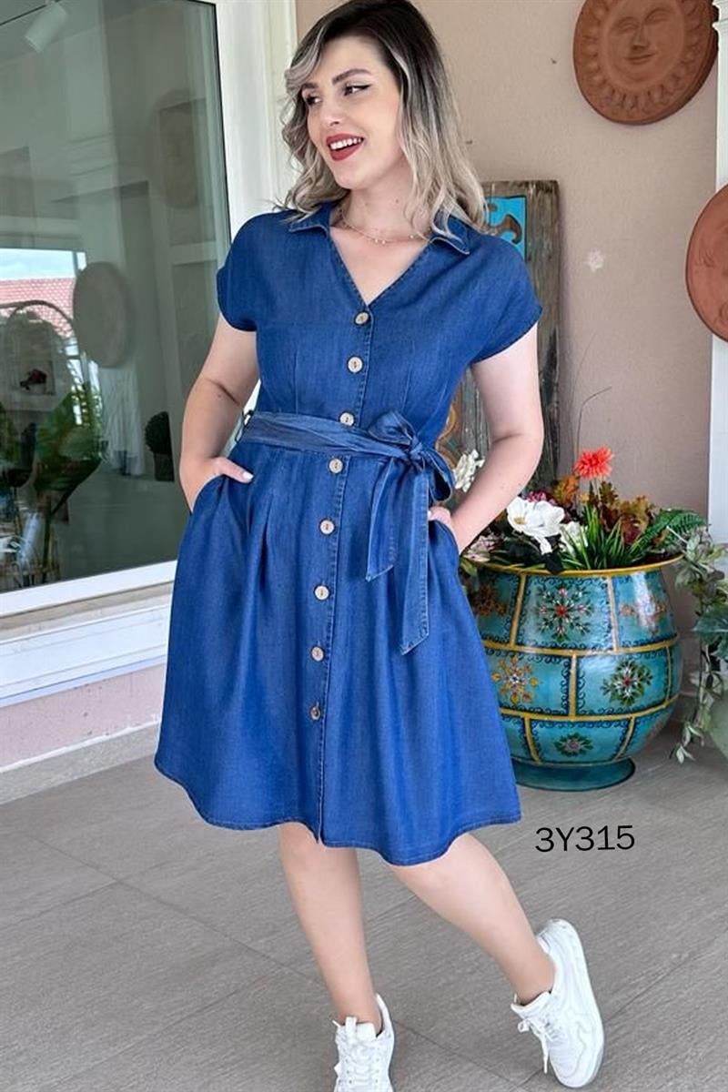 Önden Düğmeli Polo Yaka Tensel Elbise