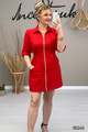 ÖNDEN FERMUARLI BELİ LASTİKLİ CEPLİ ELBİSE OMUZDAN AŞAĞI 85 CM