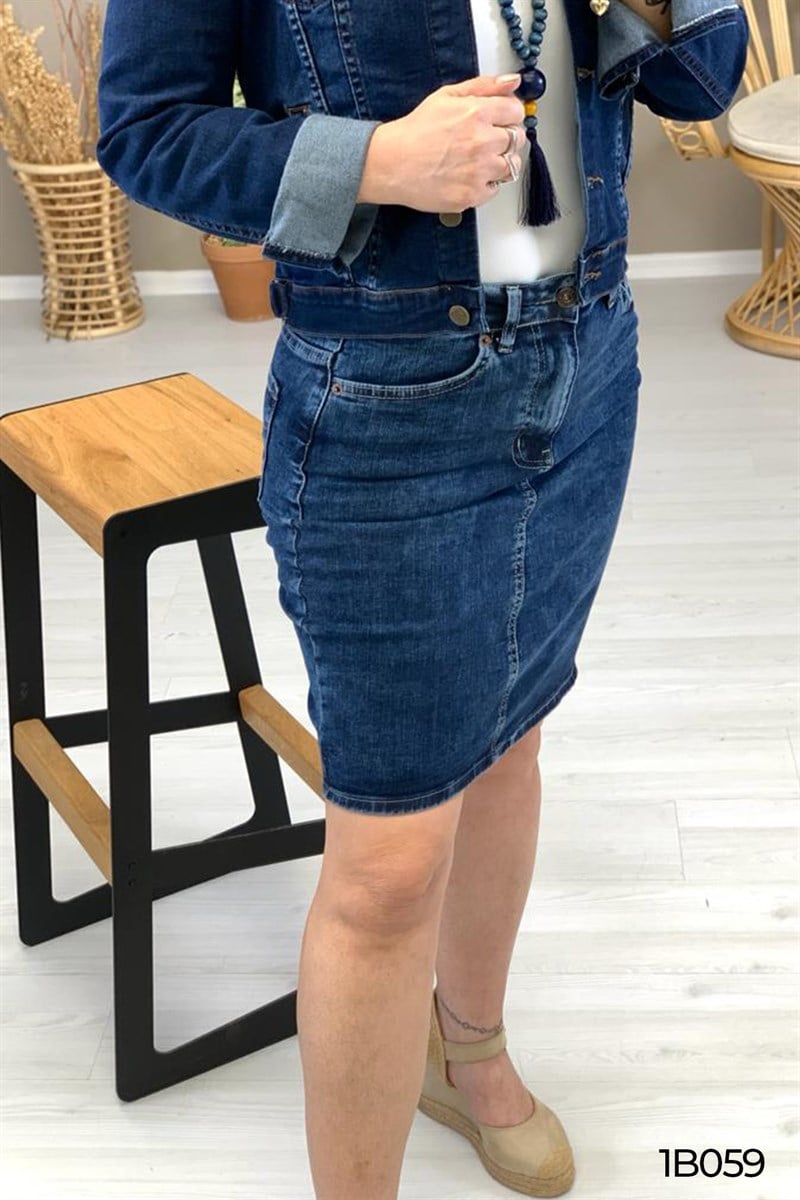 Likralı Klasik Kot Etek