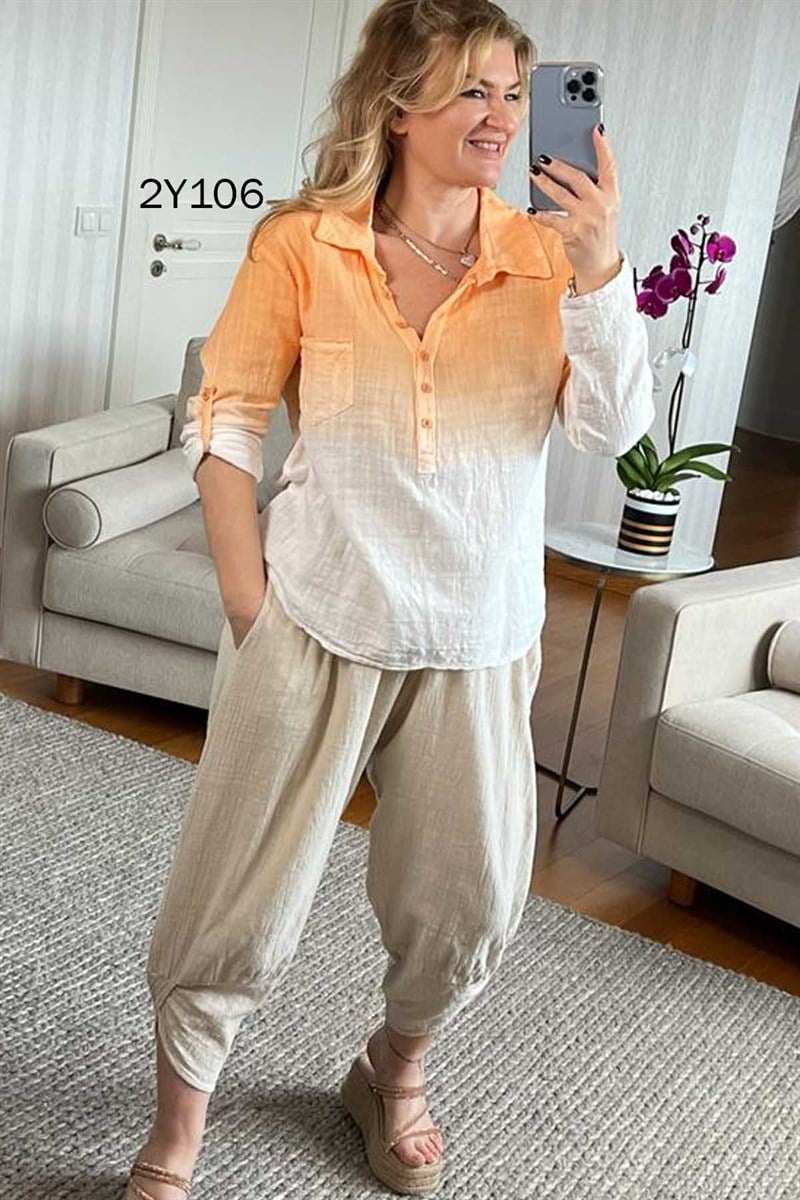 ÖNDEN YARIM DÜĞMELİ BATİK GÖNLEK OMUZDAN AŞAĞI ÖN 66 CM ARKA 72 CM