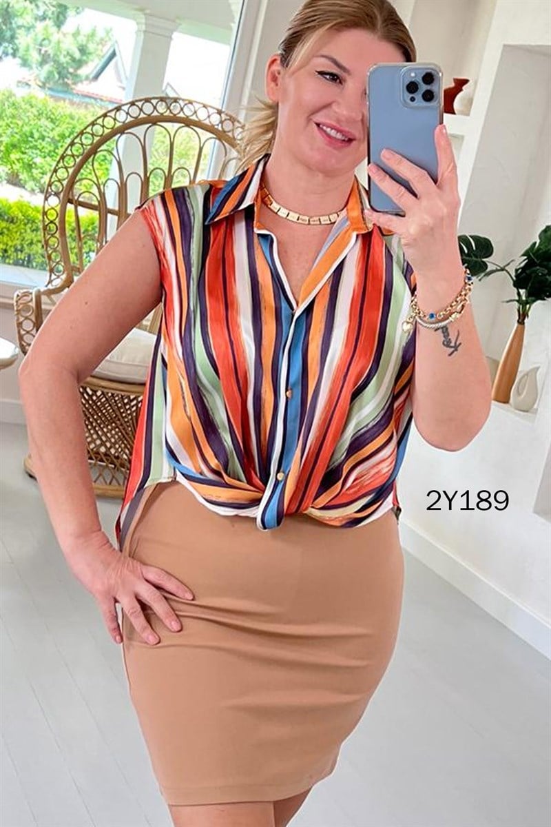 ÖNÜ BÜZGÜLÜ SATEN BLUZ OMUZDAN AŞAĞI ÖN 51 CM ARKA 65 CM