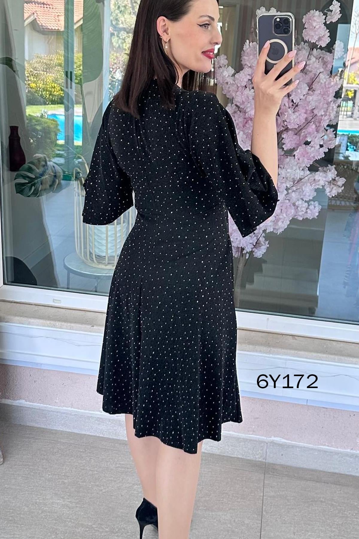 Önü Düğümlü Simli Taşlı Elbise (6Y1722763004)