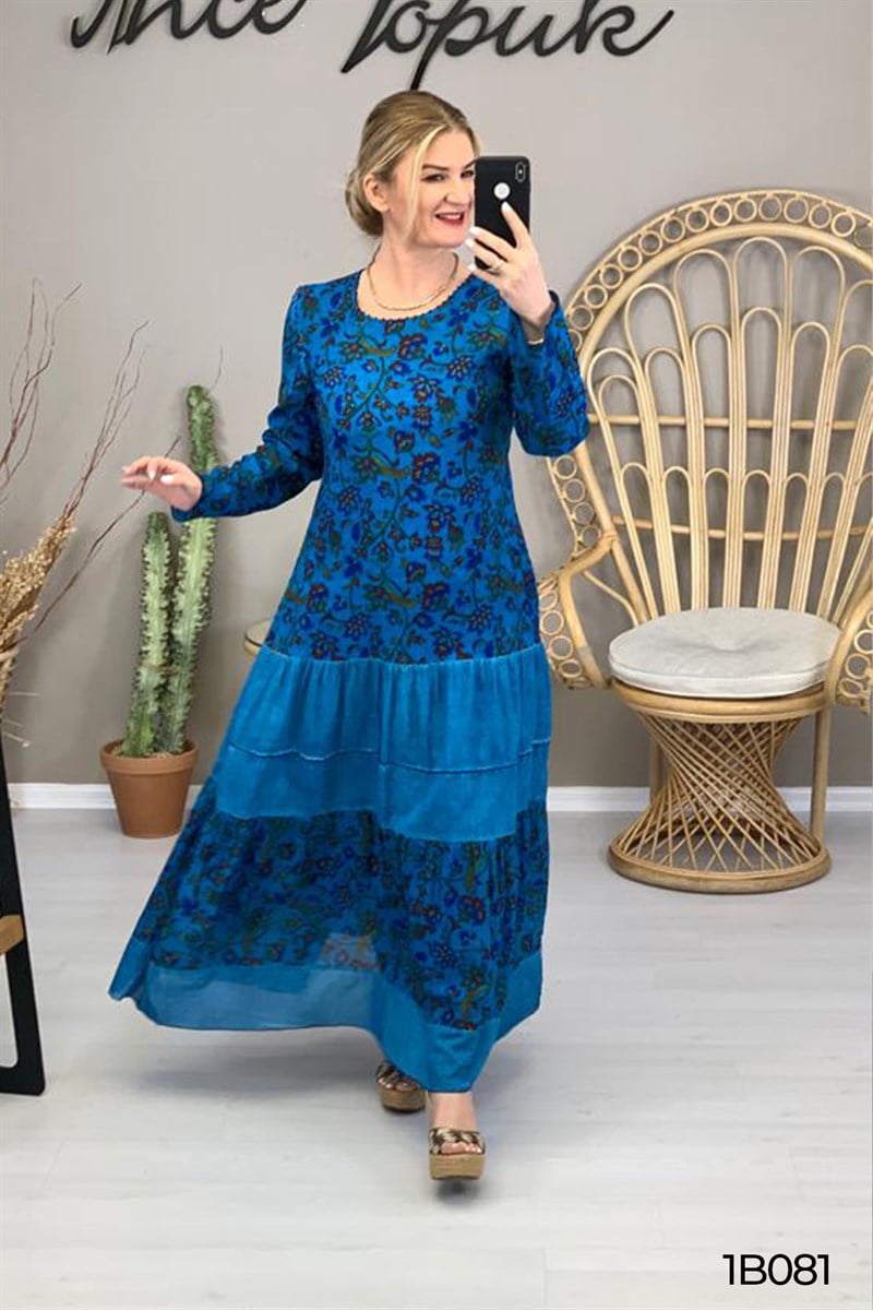 OTANTİK ETNİK DESENLİ UZUN ELBİSE OMUZDAN AŞAĞI 140 CM