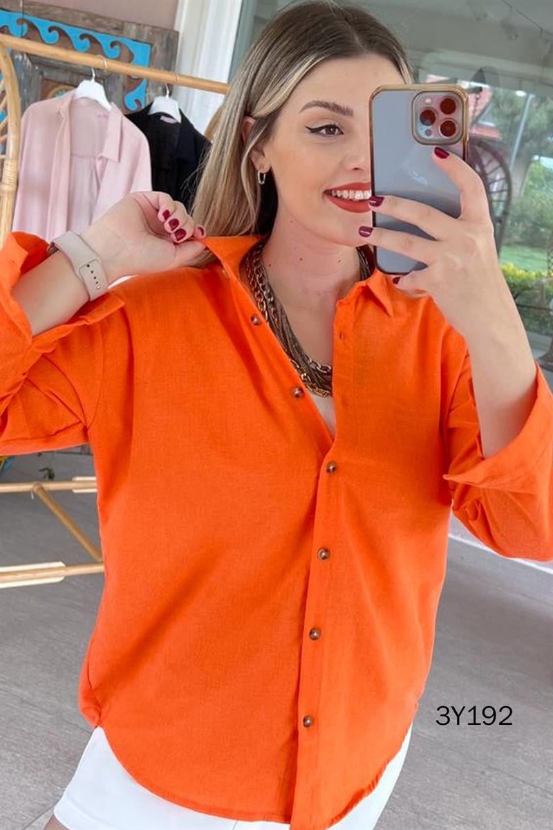 PAMUKLU KETEN GÖMLEK OMUZDAN AŞAĞI 71 CM