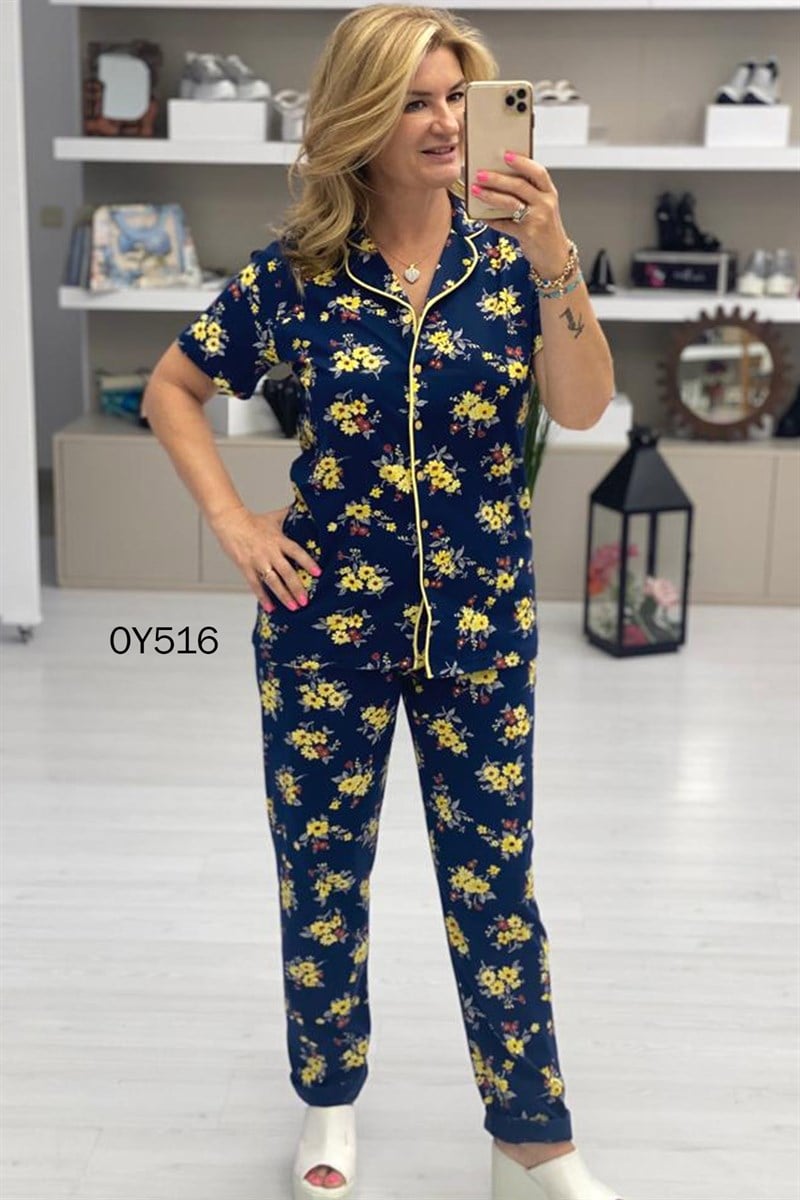 YAKALI BAYAN KISA KOL PİJAMA TAKIMI