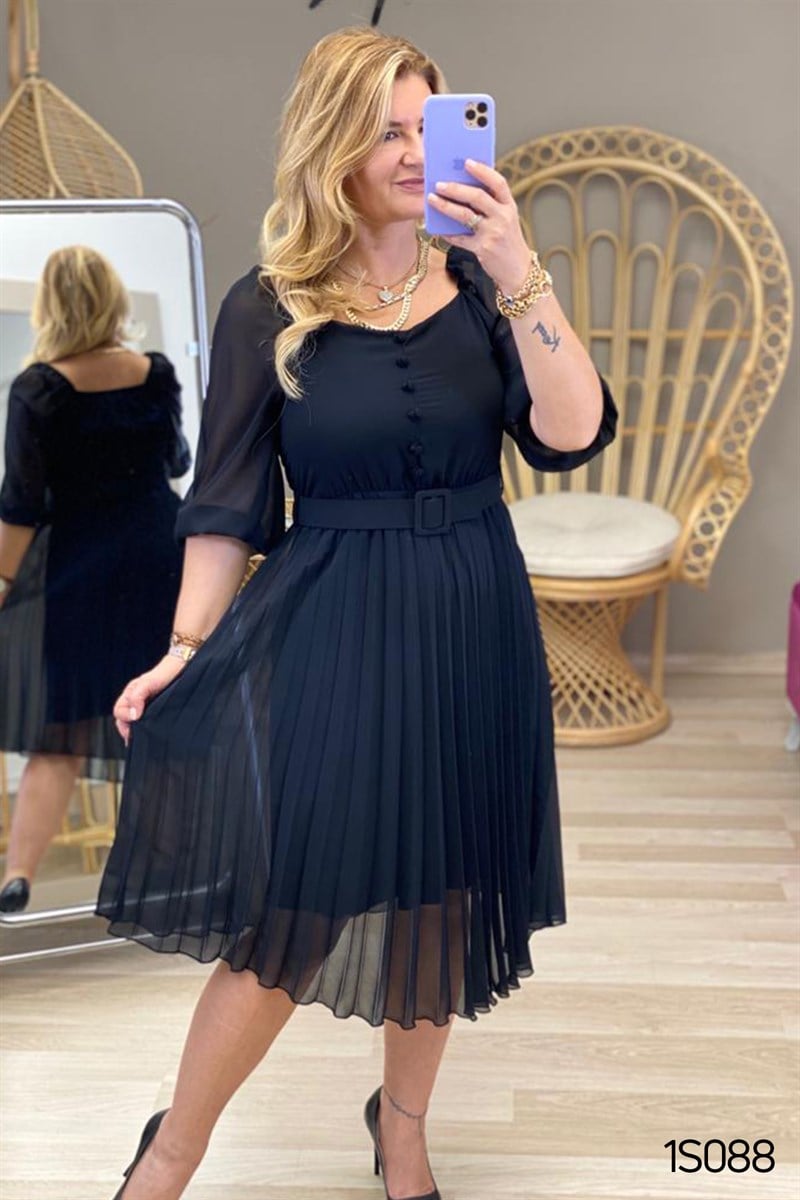 Pileli Şifon Elbise