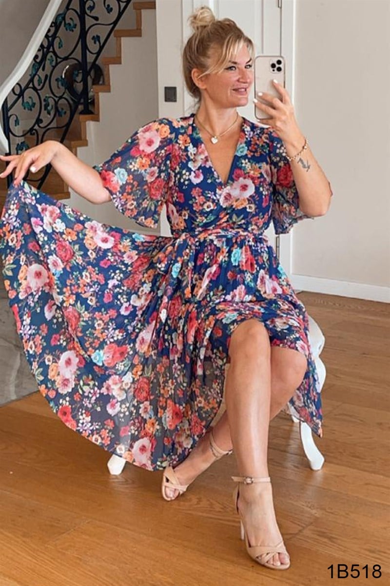 Piliseli Şifon Elbise