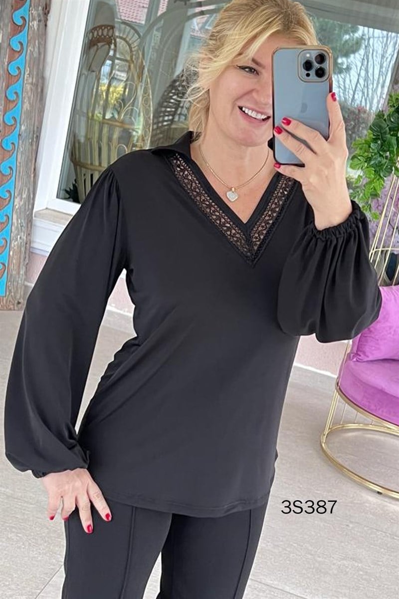 Polo Yaka Dantel Detay Bluz