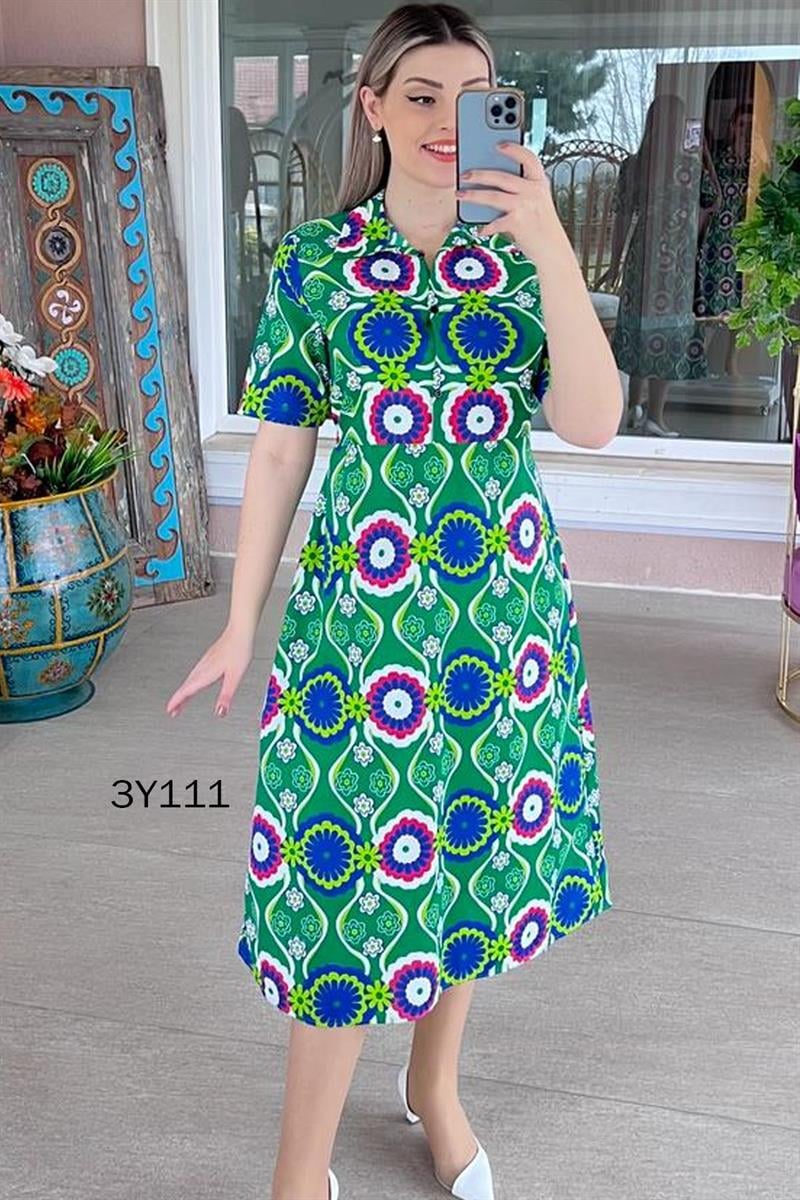 POLO YAKA ÖNDEN DÜĞMELİ POPLİN ELBİSE OMUZDAN AŞAĞI 120 CM