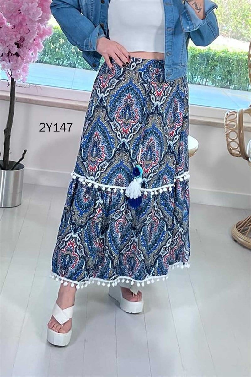 PONPONLU DESENLİ ETEK BELDEN AŞAĞI 85 CM