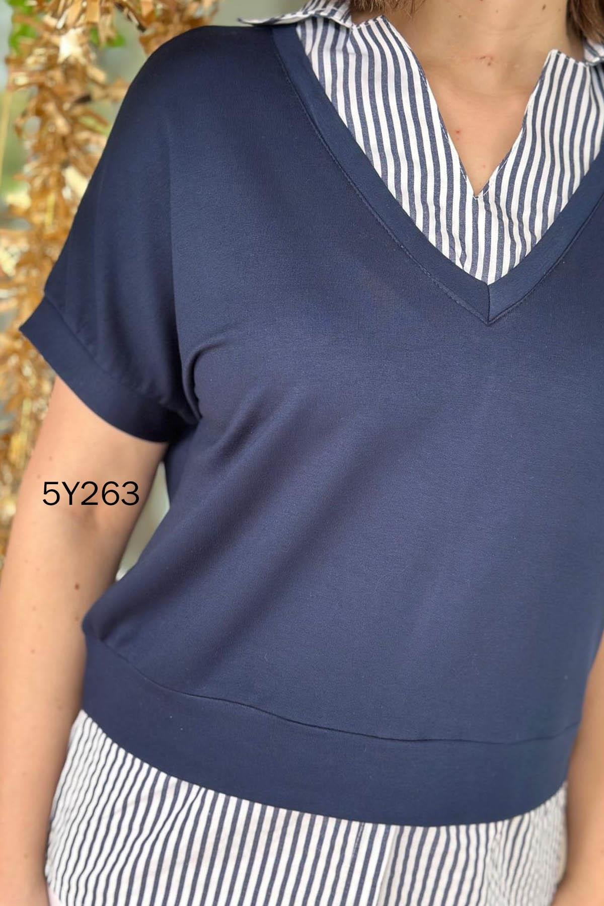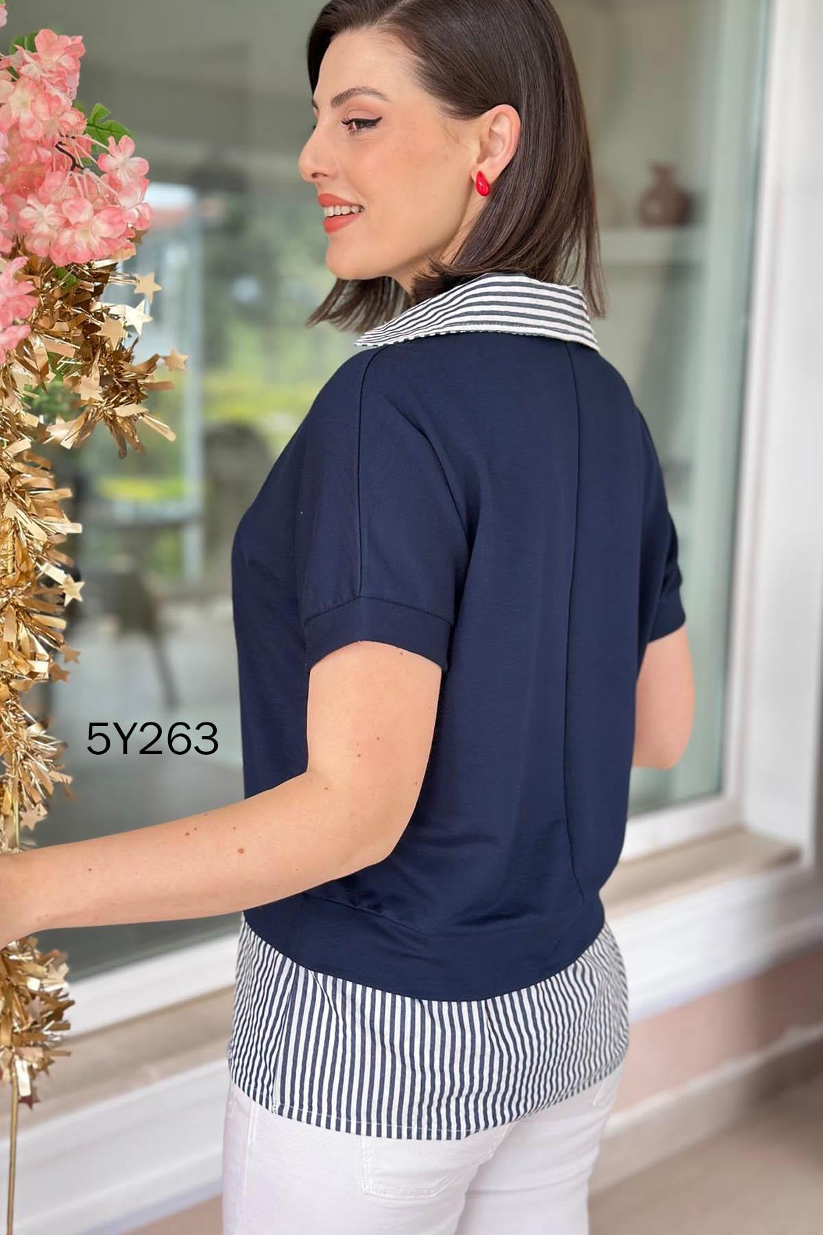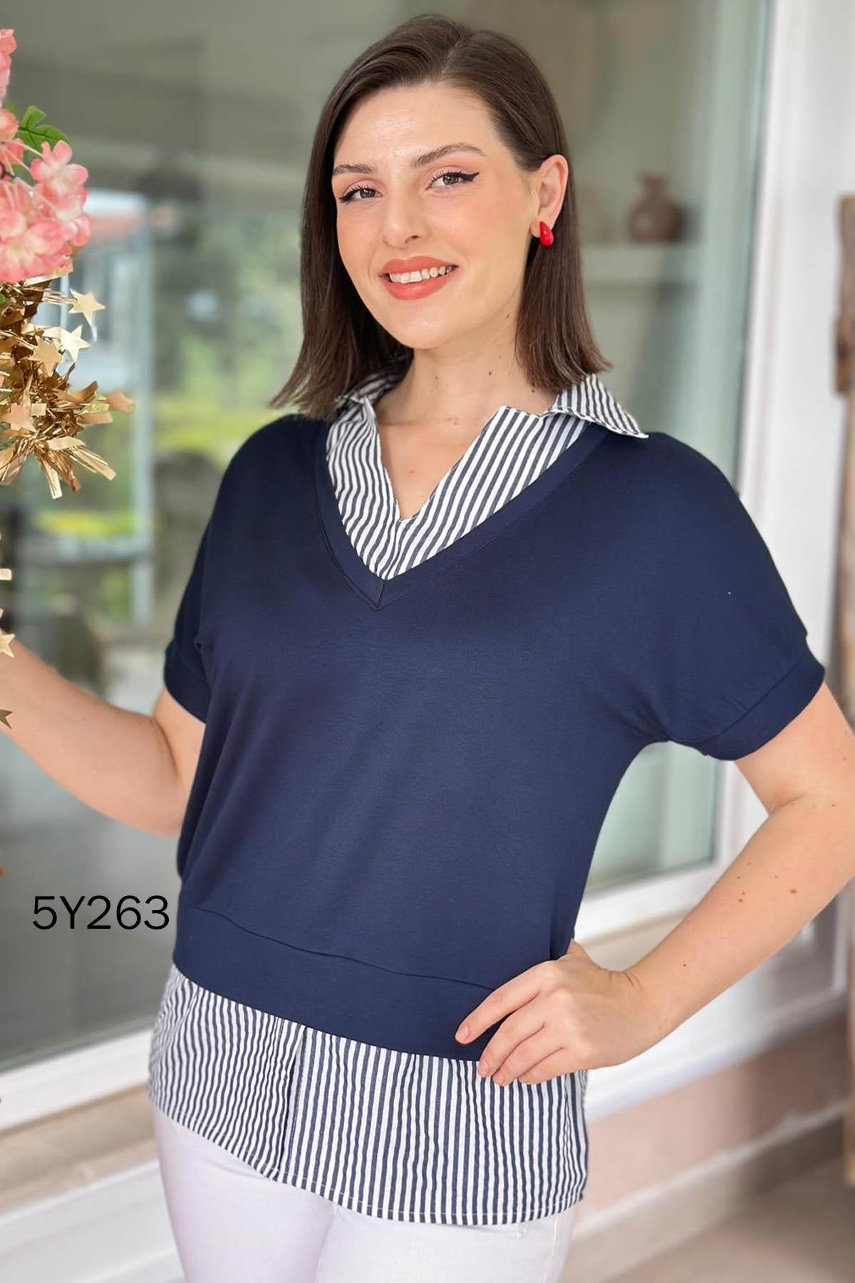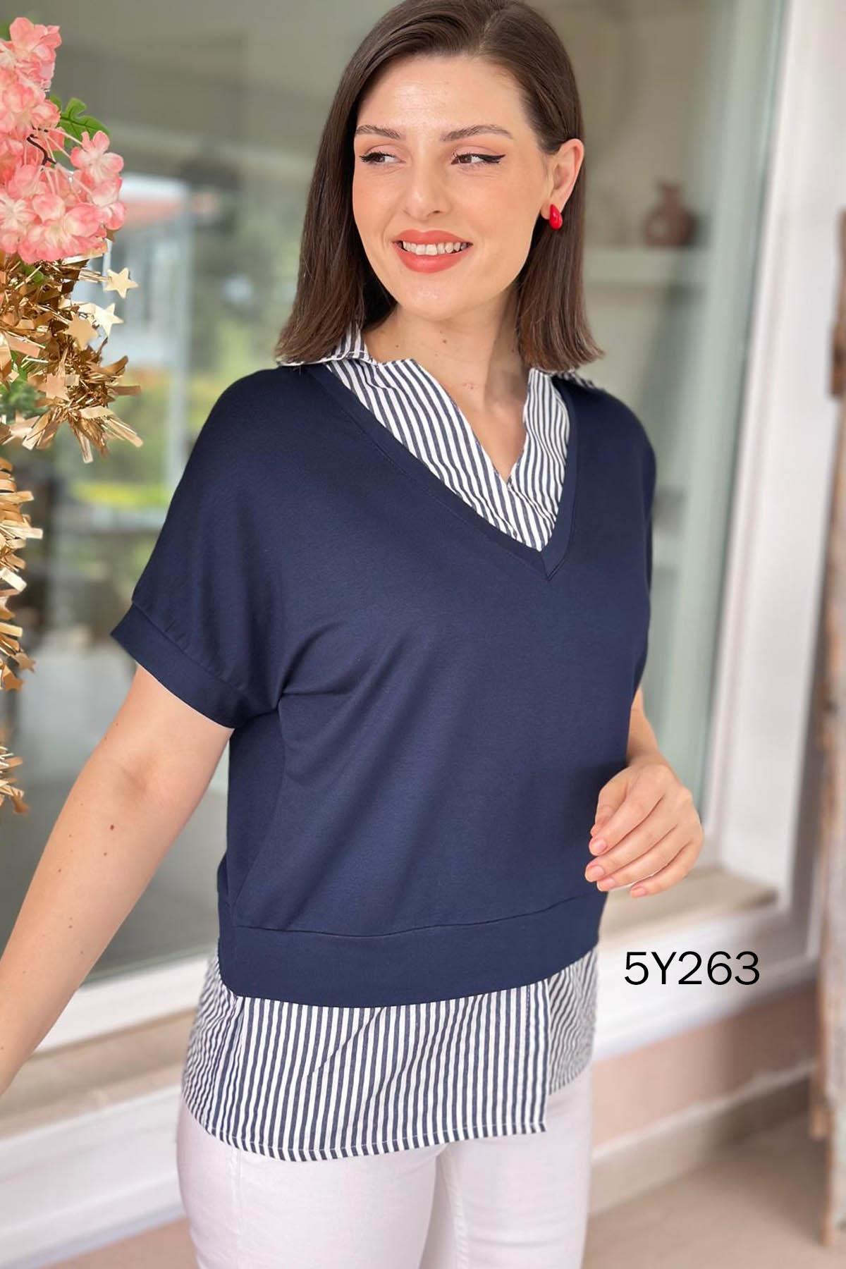 POPLİN GARNİLİ KRİSTAL BLUZ OMUZDAN AŞAĞI 66 CM