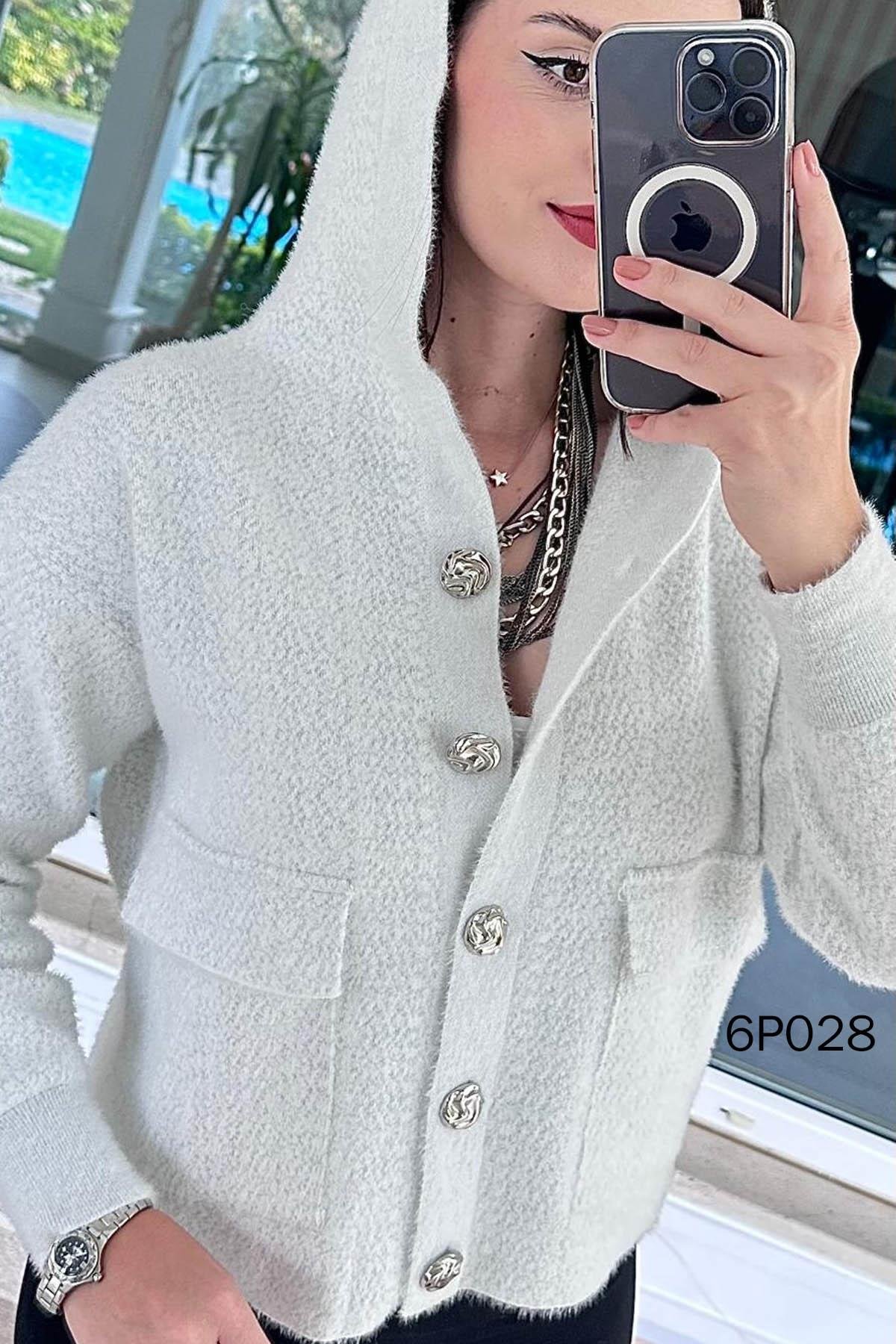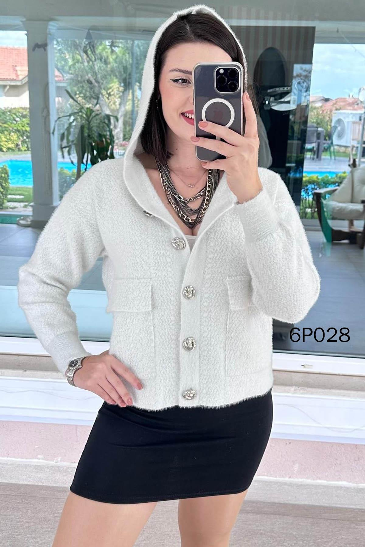 PRİVE SERİ SAKALLI KAPŞONLU TRİKO HIRKA OMUZDAN AŞAĞI 57 CM