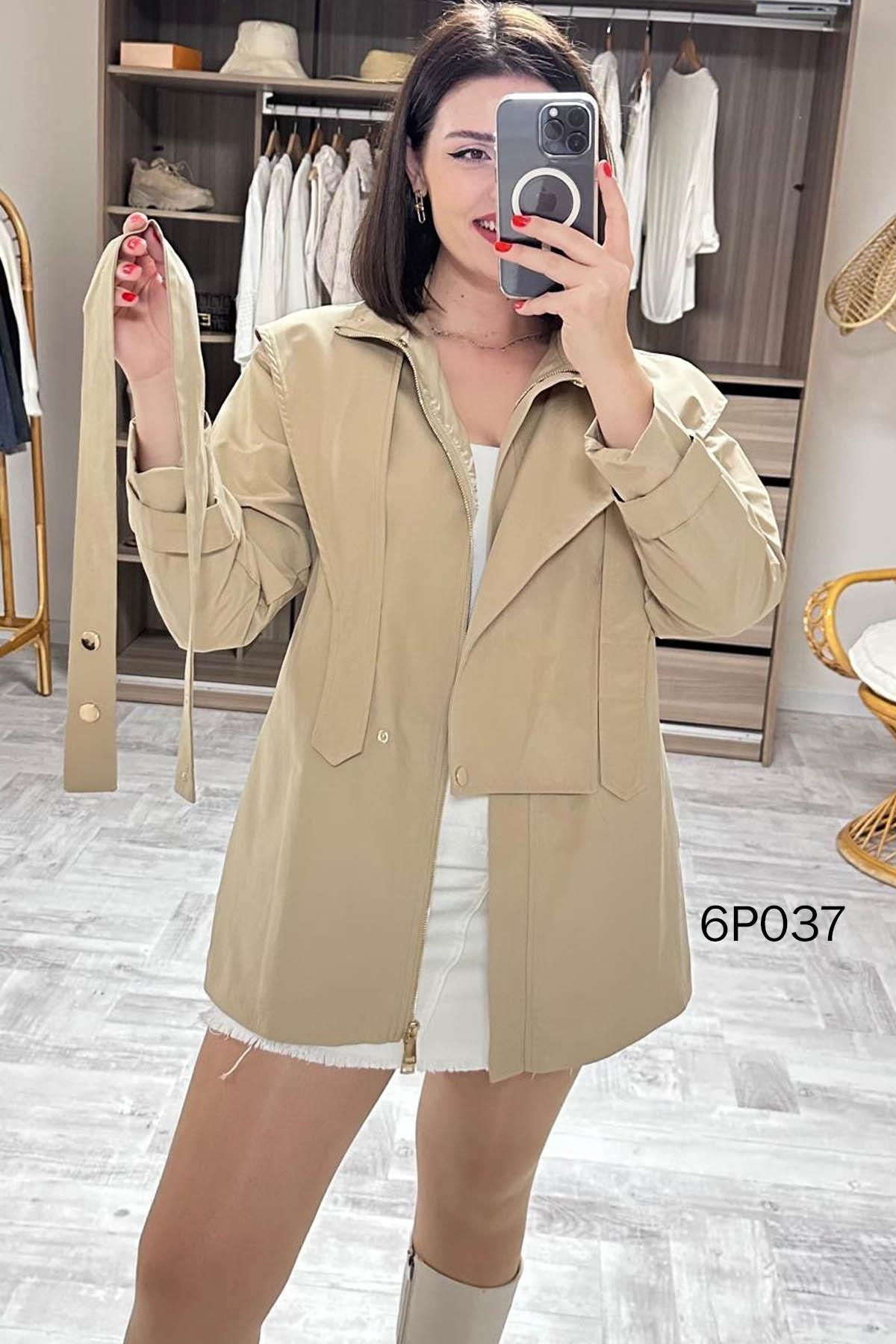PRİVE SERİ ÇITÇIT KEMERLİ KISA TRENÇKOT OMUZDAN AŞAĞI 77 CM