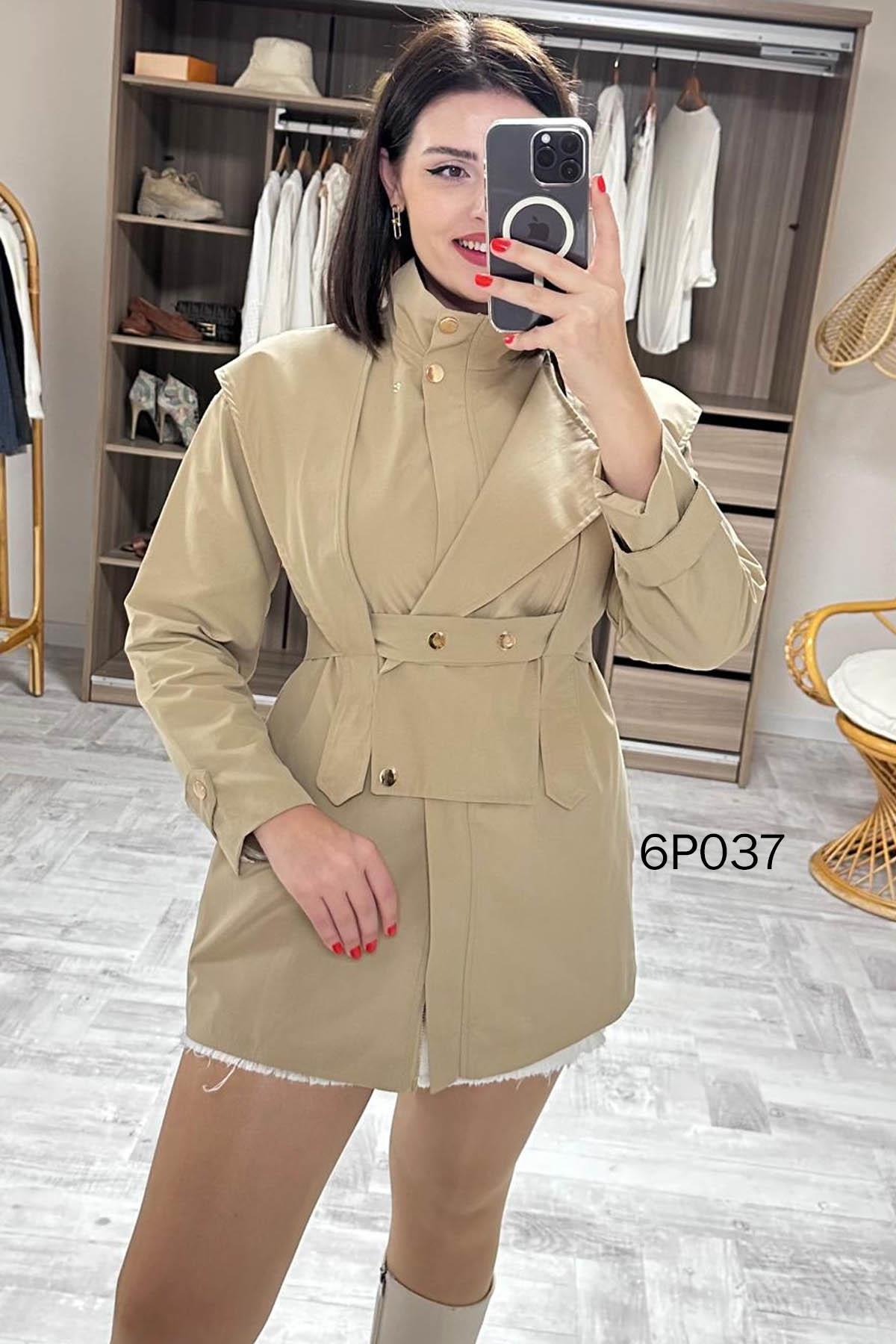 Prive Seri Çıtçıt Kemerli Kısa Trençkot