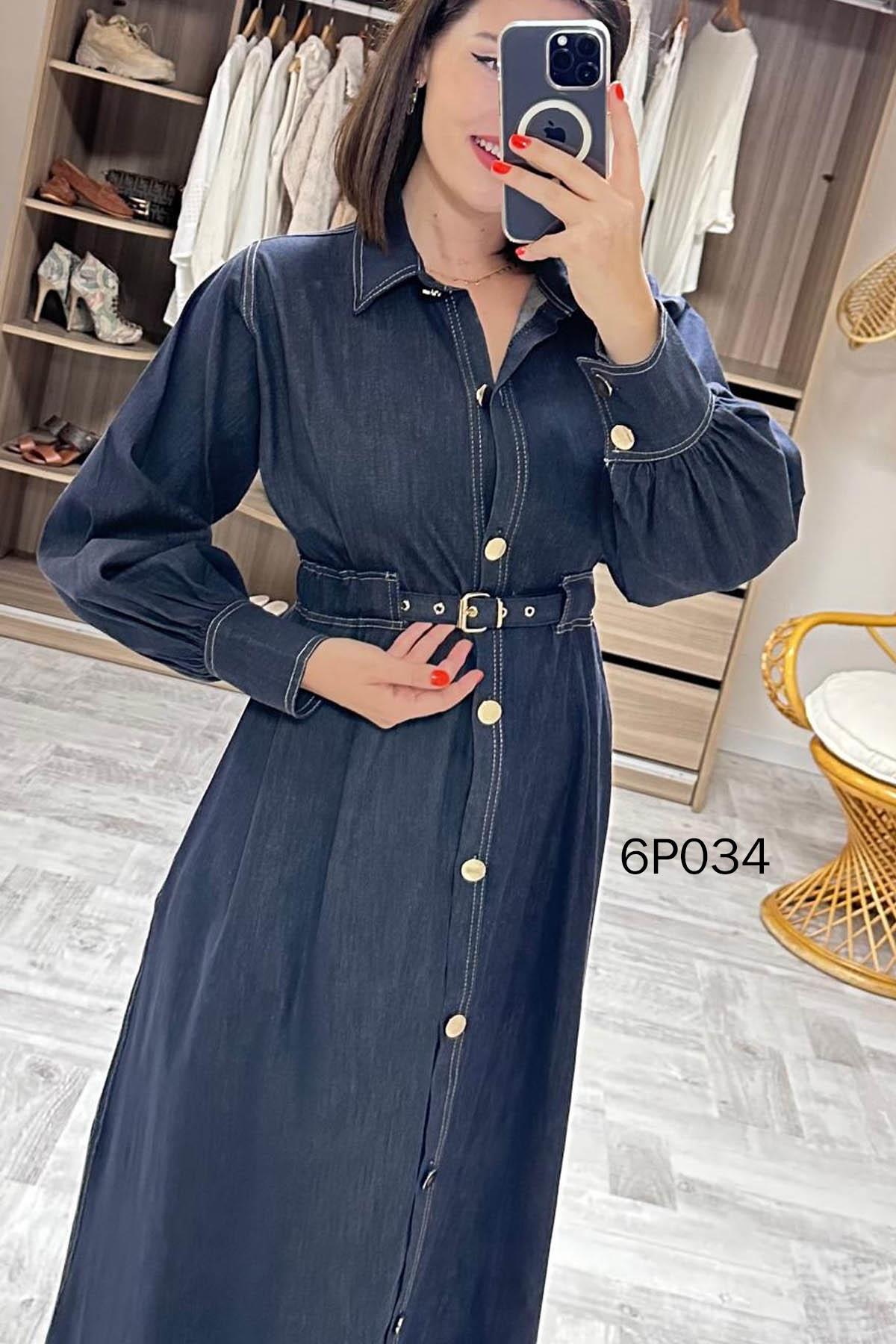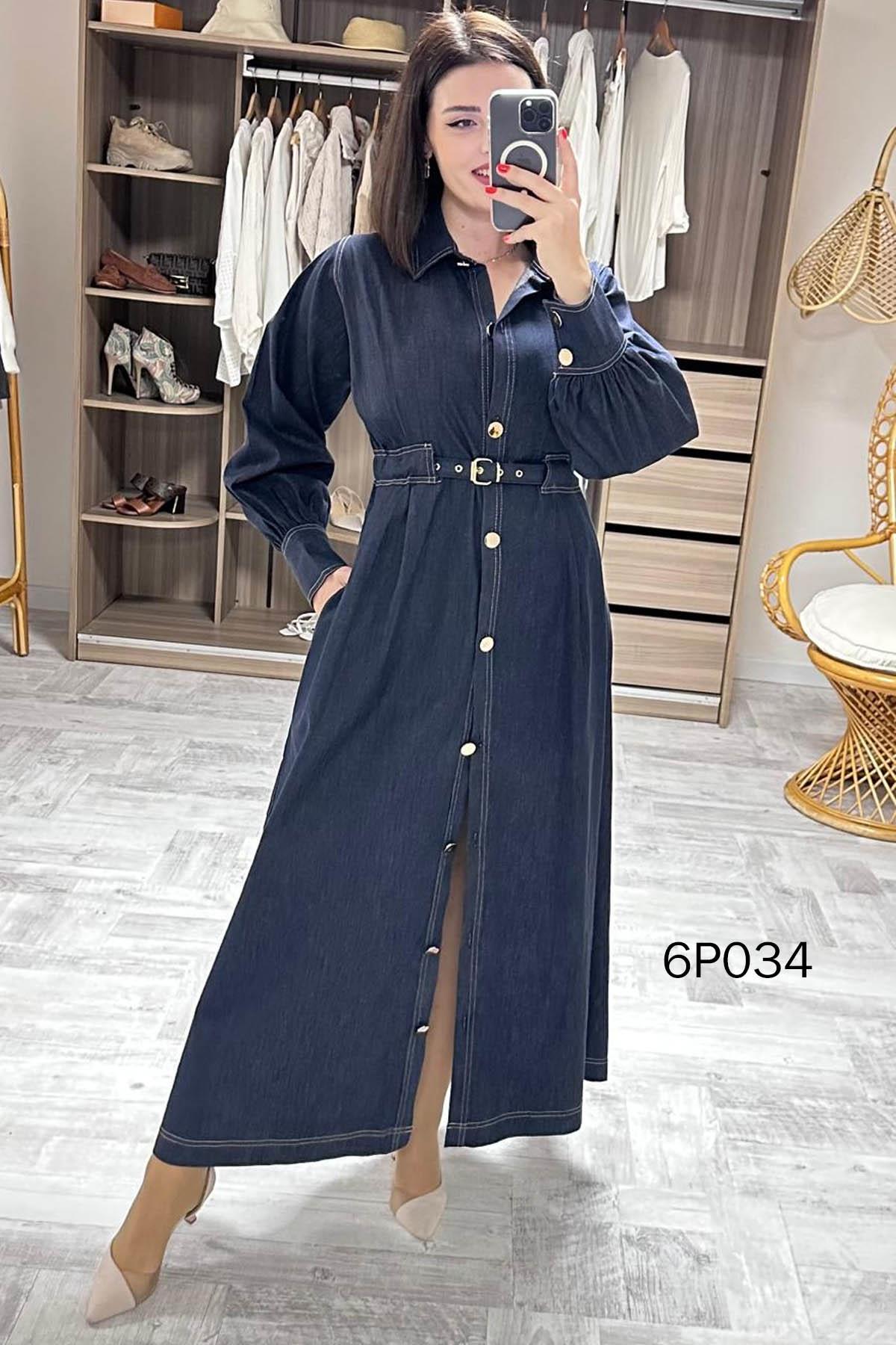 PRİVE SERİ KEMERLİ KOT ELBİSE OMUZDAN AŞAĞI 139 CM