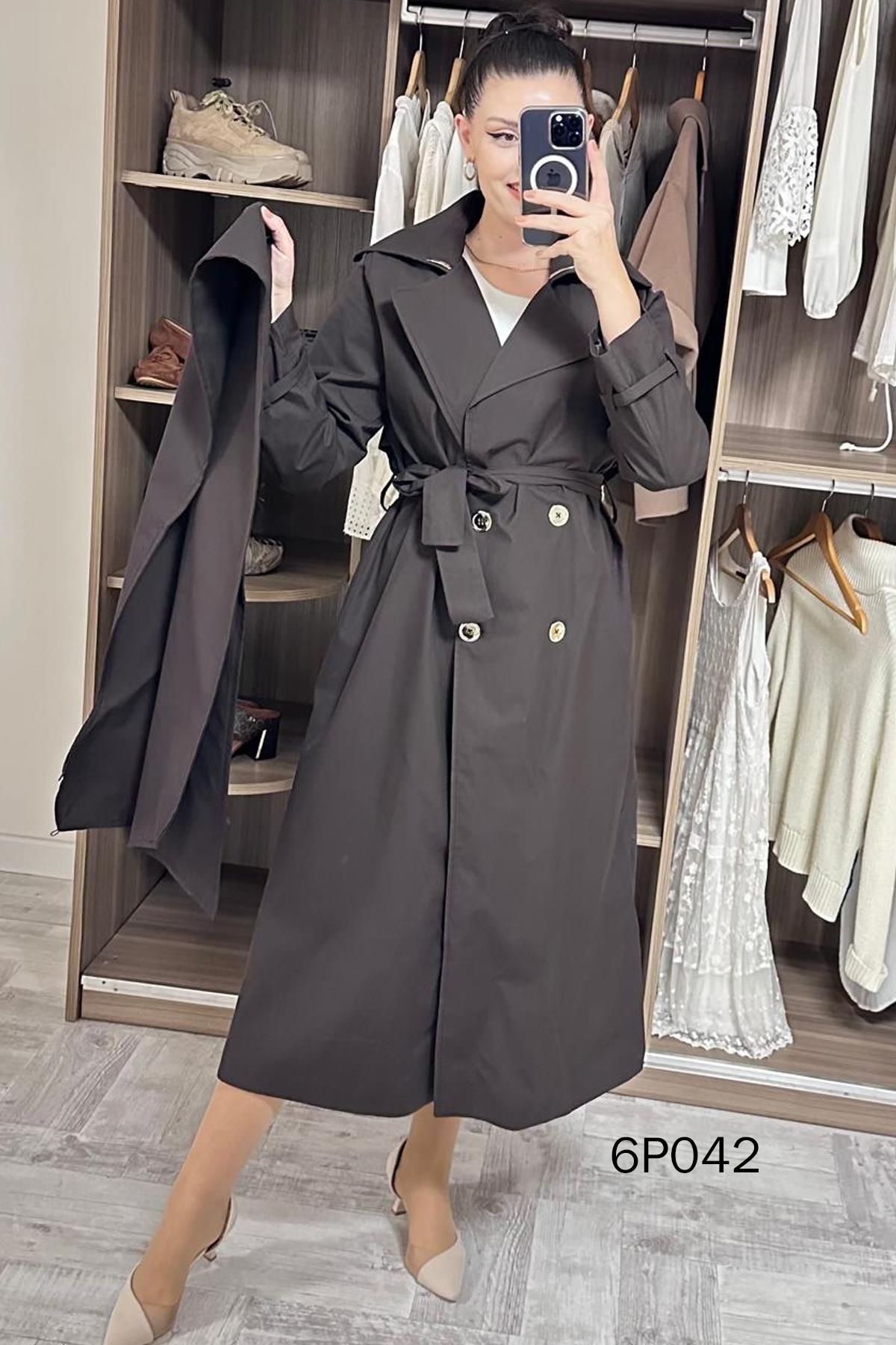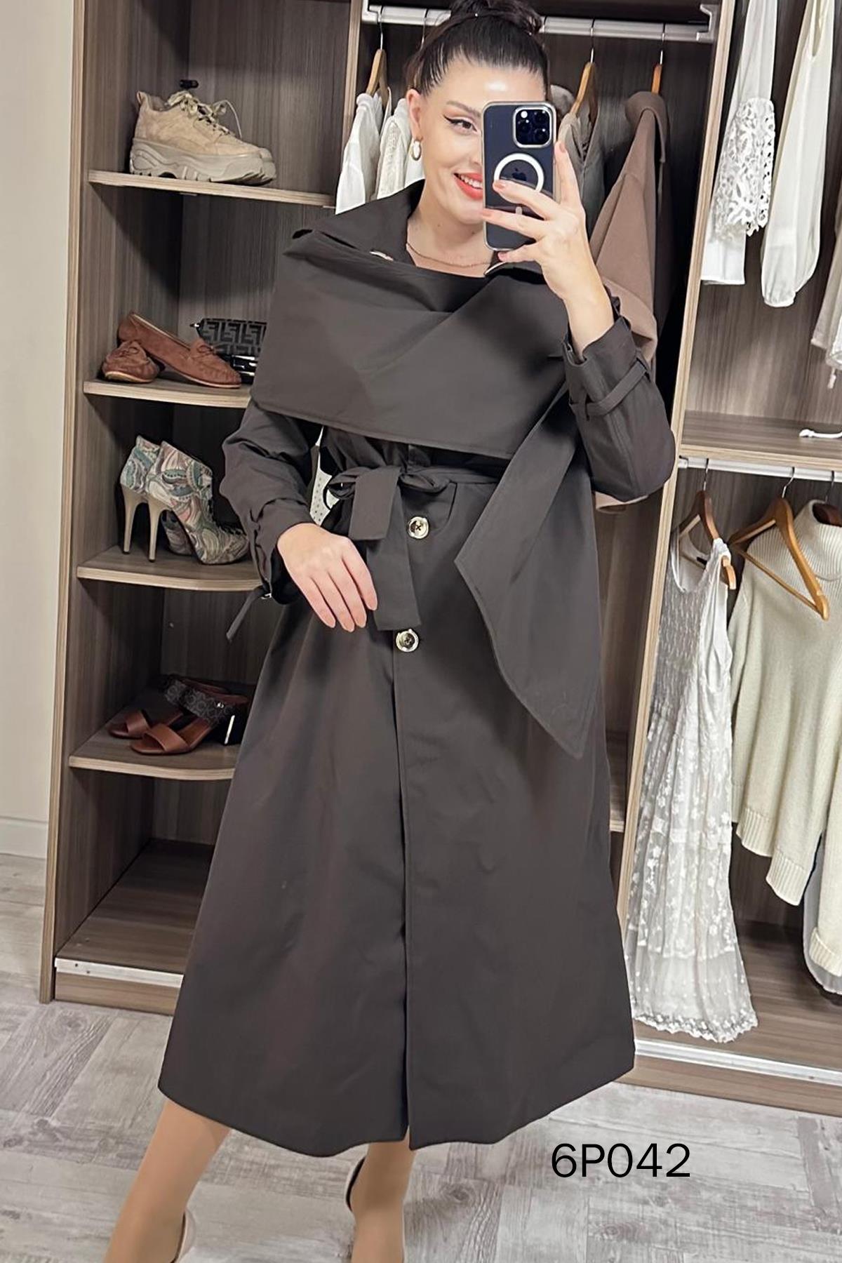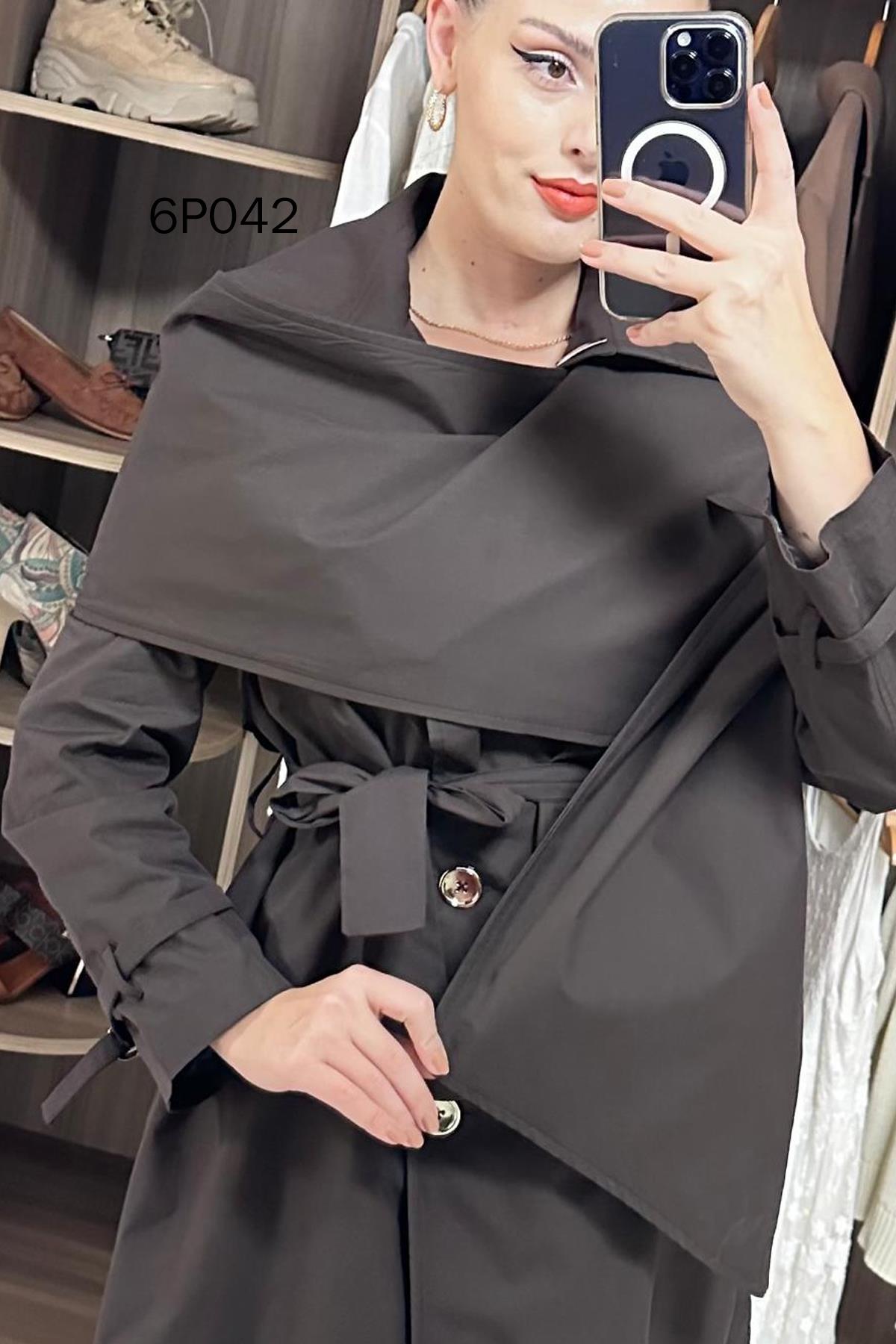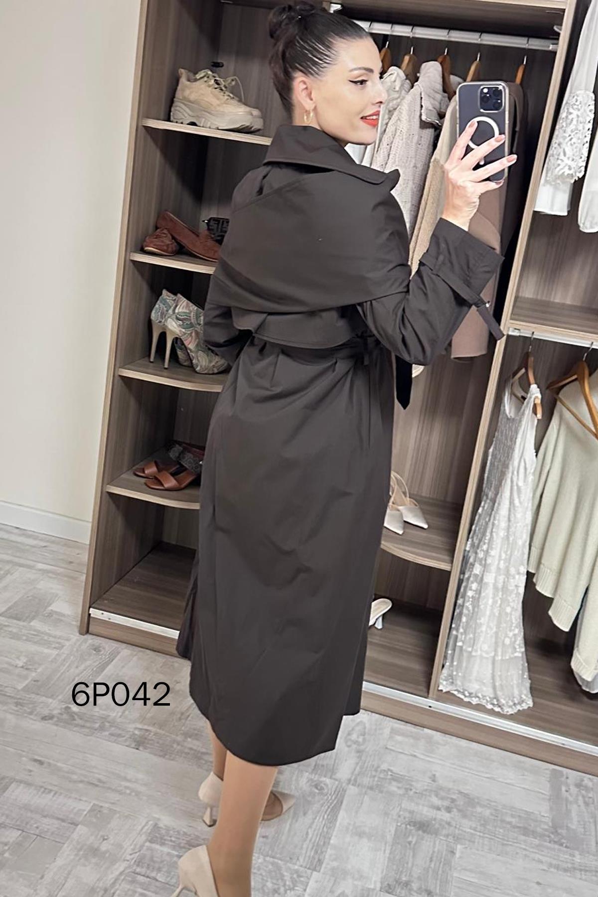 PRİVE SERİ ŞAL DETAY TRENÇKOT OMUZDAN AŞAĞI 126 CM